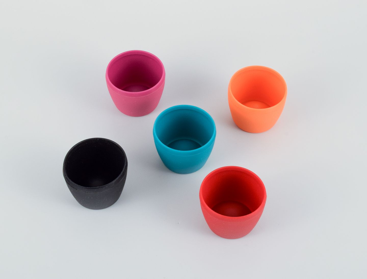 Verner Panton for MENU, ten egg cups in different colours, made of rubber.