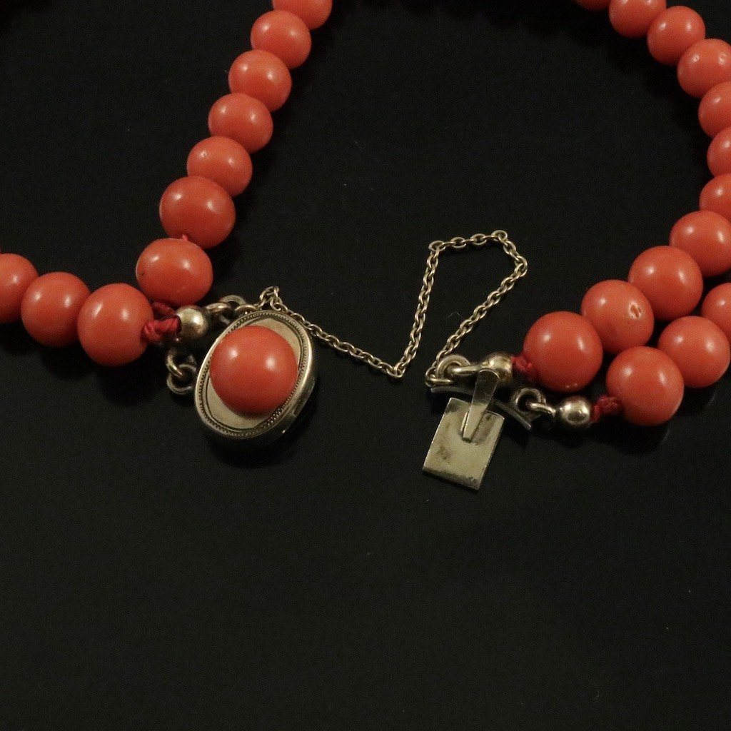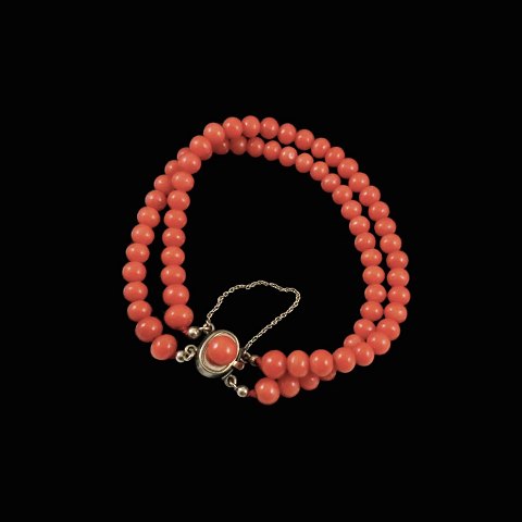 Dobbelt-radet koral armbånd med forgyldt lås.