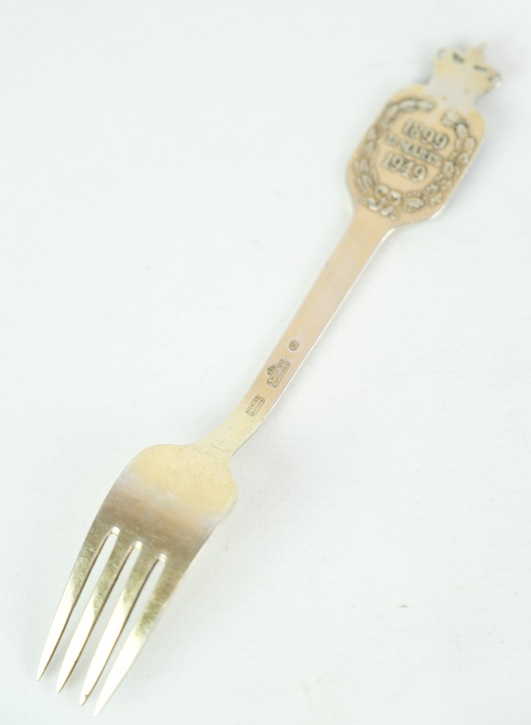 50 years Jubilee fork, blue enamel, royal crown, 1899-1949