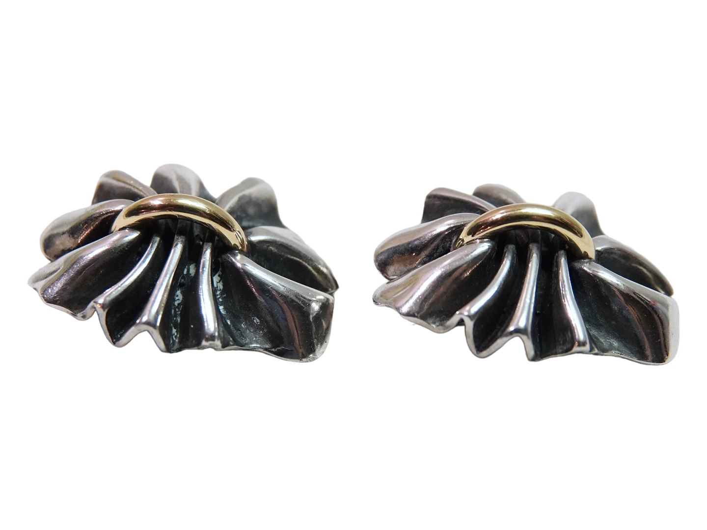 Georg Jensen, large ear clips in sterling silver and 18 carat gold.