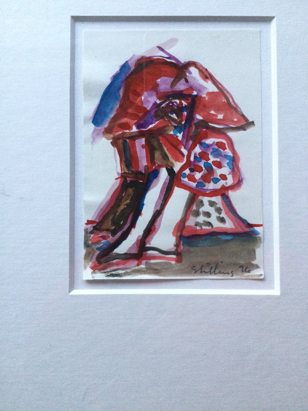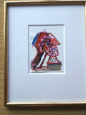 Akvarel af Kenn André Stilling - Komposition med svampe 1996.