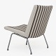 AP 39 - Lufthavnsstol, lænestol i nyt tekstil ('Halk' fra Kjellerup Væveri, farve: 02-260) på stel af stål.