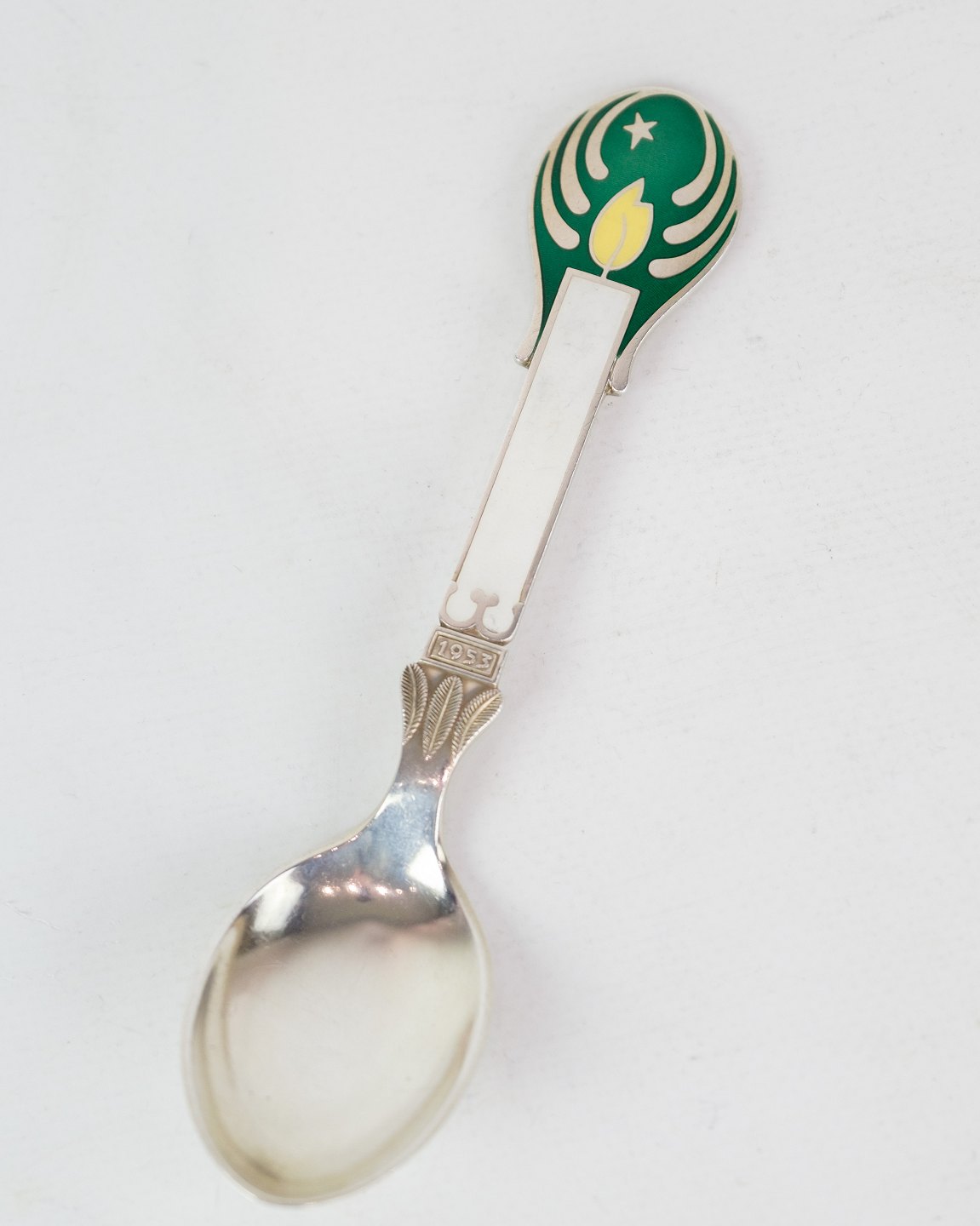 Older Christmas spoon with nice decoration in three-towered silver in fine used condition.
