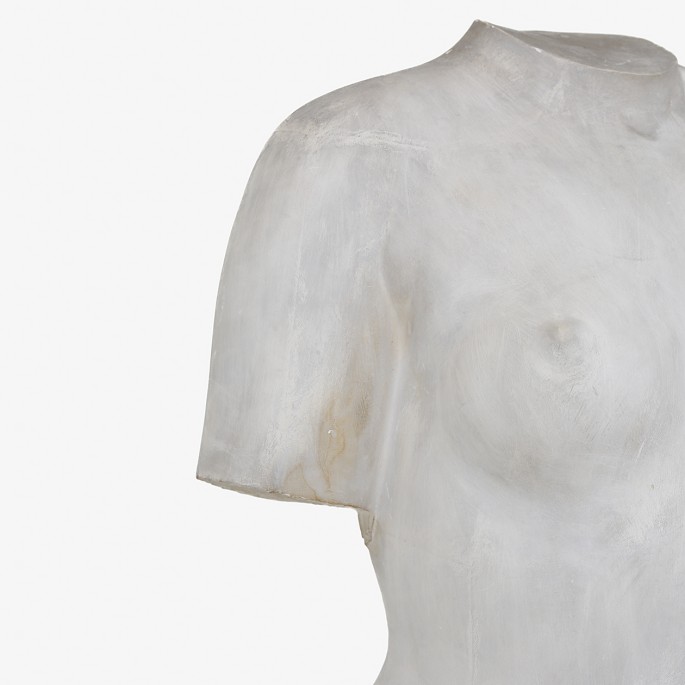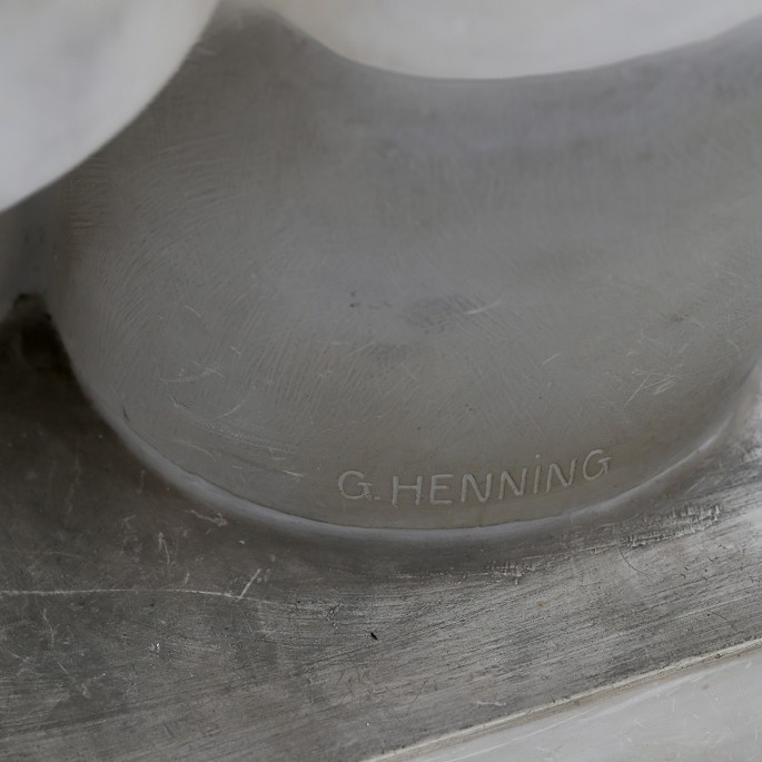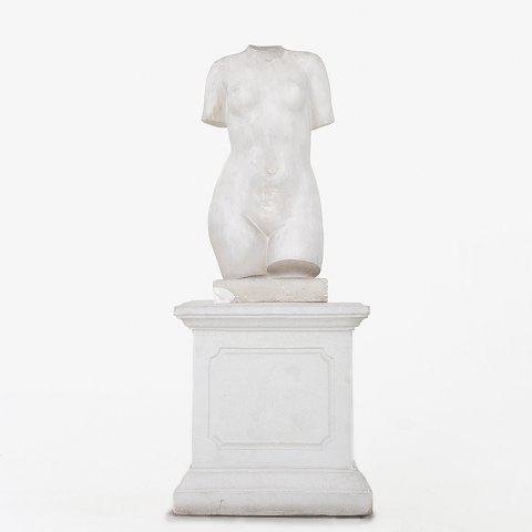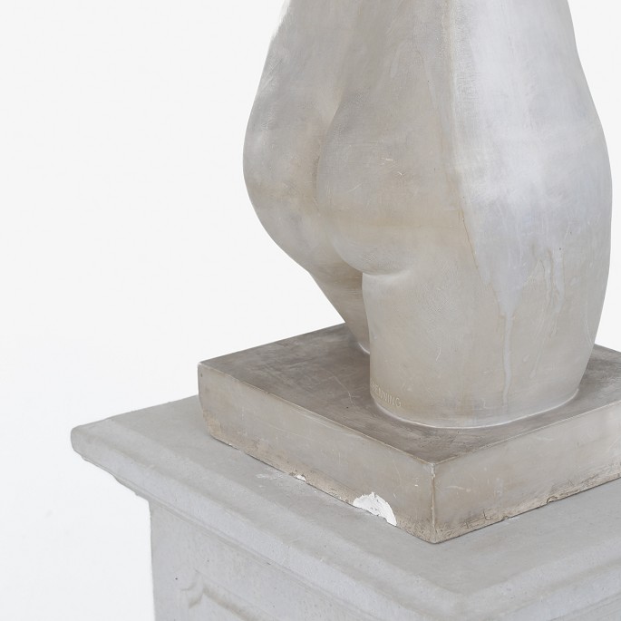 Skulptur af gips på sokkel af beton. Signeret.