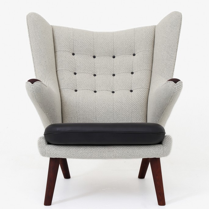 AP 19 - Reupholstered Papa Bear Chair in 'Coda' textile (colour: 0100) with cushion and buttons in Elegance aniline leather (colour: Mocca). KLASSIK offers the chair in textile and/or leather of your choice. Please contact us for more information.