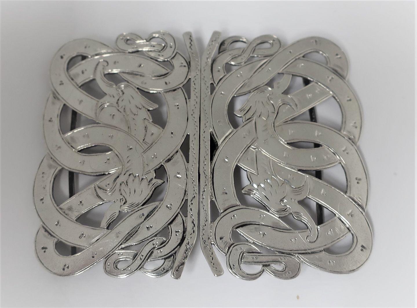 Silver belt buckle (830). Length 75 mm. Height 50 mm.