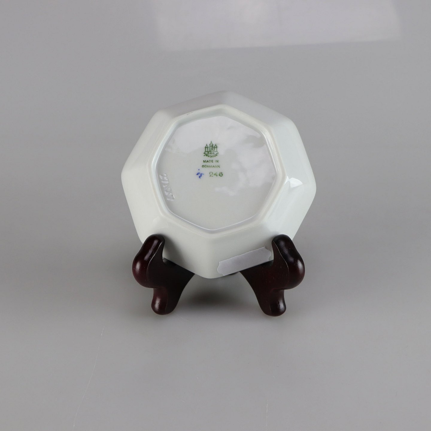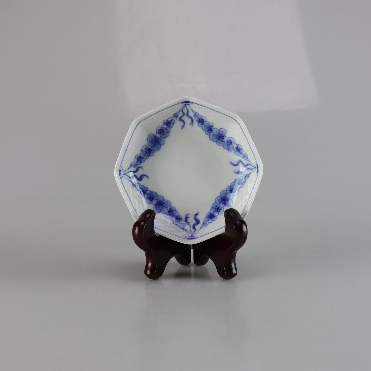 Kuvert asiet i hvidt porcelæn med skelform og motiv af guirlander med blå blomster
