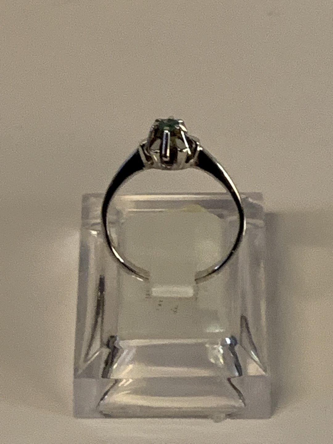 Princess ring with light blue stone in 14 karat white gold
