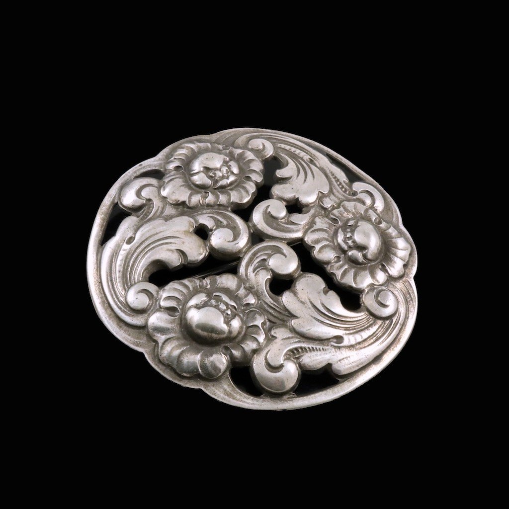 Bernhard Hertz. Art Nouveau 830s Silver Brooch.