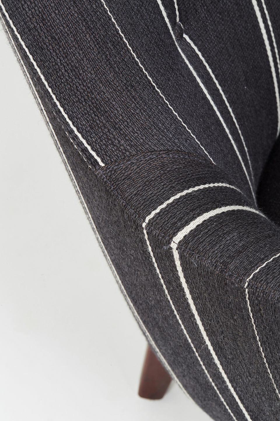 Arne Vodder. Topersoners sofa model AV53,betrukket med sort og hvidstribede savak og ben i mørkt træ.Løse sædehynder med dunfyld.