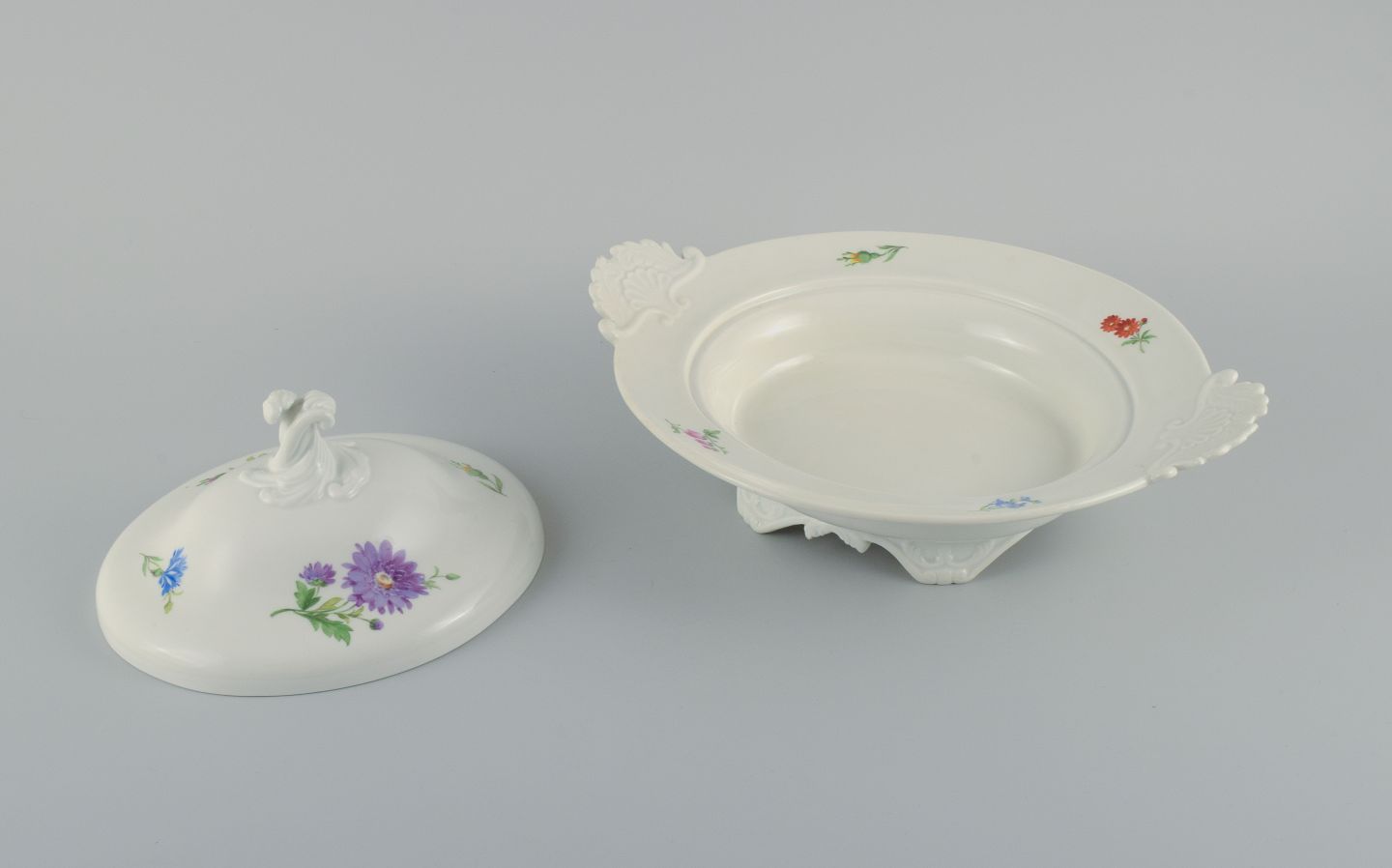 Meissen, large round tureen with lid. Hand painted with flowers.