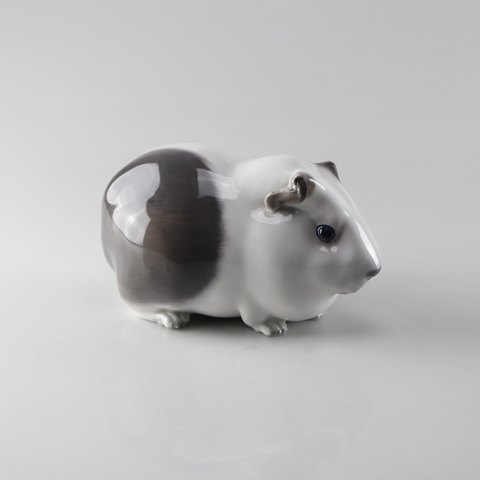 Figur af porcelæn i grå og hvide farver af et marsvin