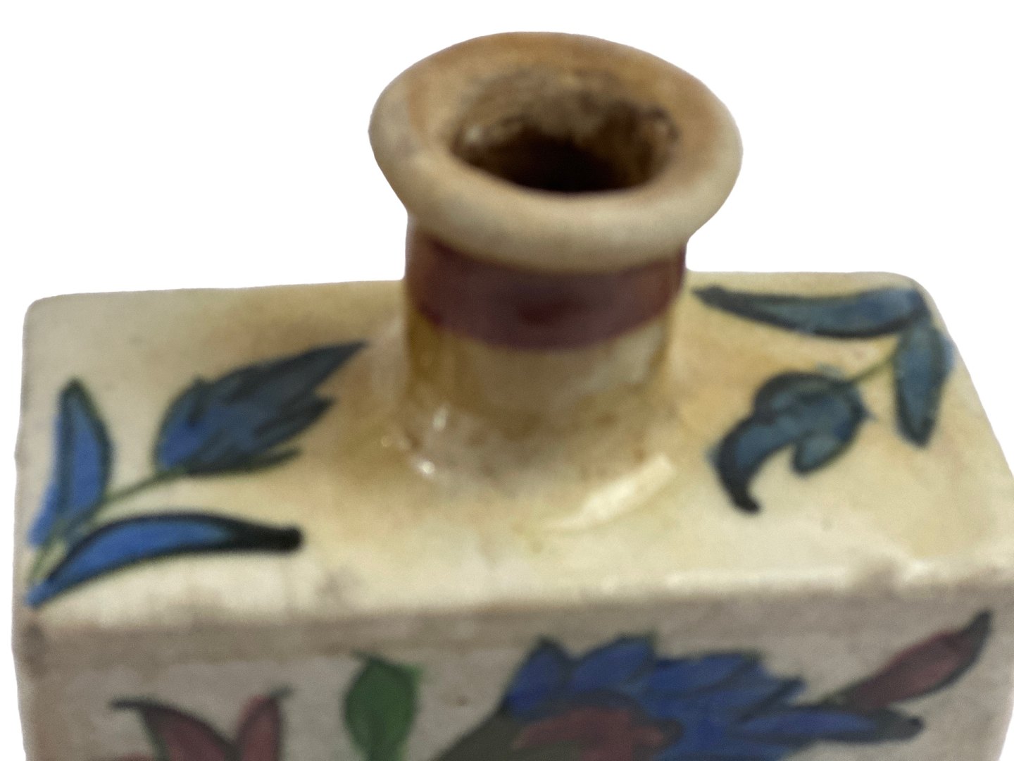 Persian bottle-vase / Iznik pottery. Polychrome motifs with deer, respectively bird on the front and back - as well as flowers and leaves.