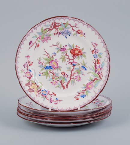 Sarreguemines, France, a set of six porcelain plates, hand painted with floral motifs.