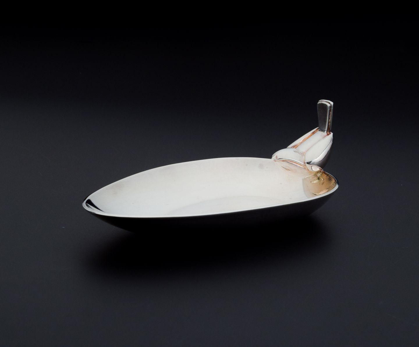 Christofle, Paris, France, small modernist bowl with bird on top.