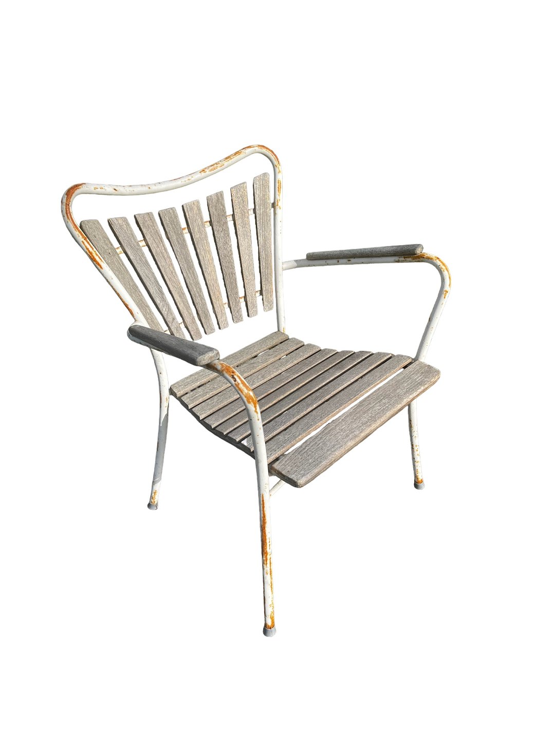 Marguerit garden set, 4 chairs, teak wood, metal, 1950s.