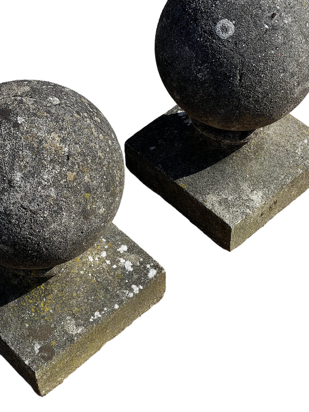 A pair of stone gate posts / balls from the beginning of the 20th century.