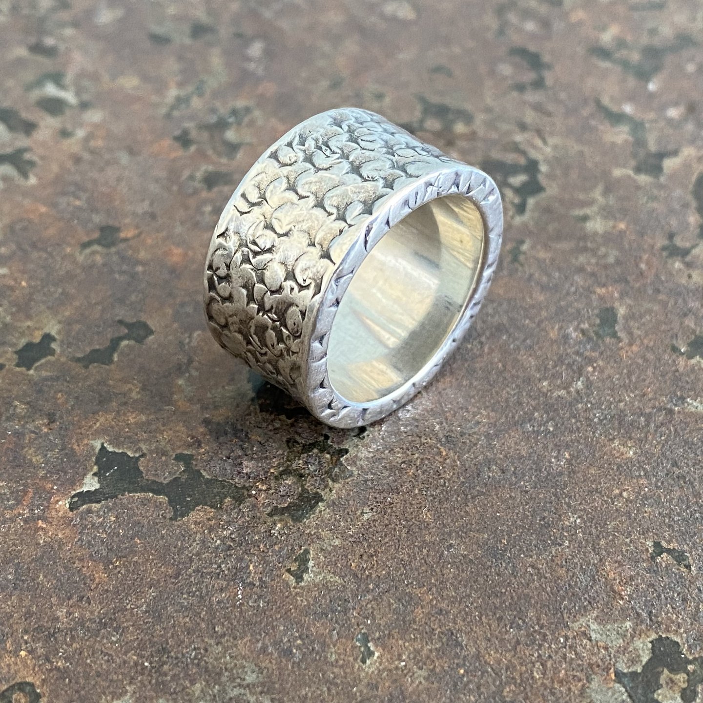 Wide sculptural ring of sterling silver. Ø 22 mm. internal dimensions 16 mm. Stamp 925s weight 15g