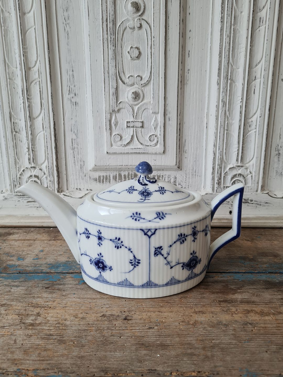 Royal Copenhagen Blue fluted oval teapot no. 255