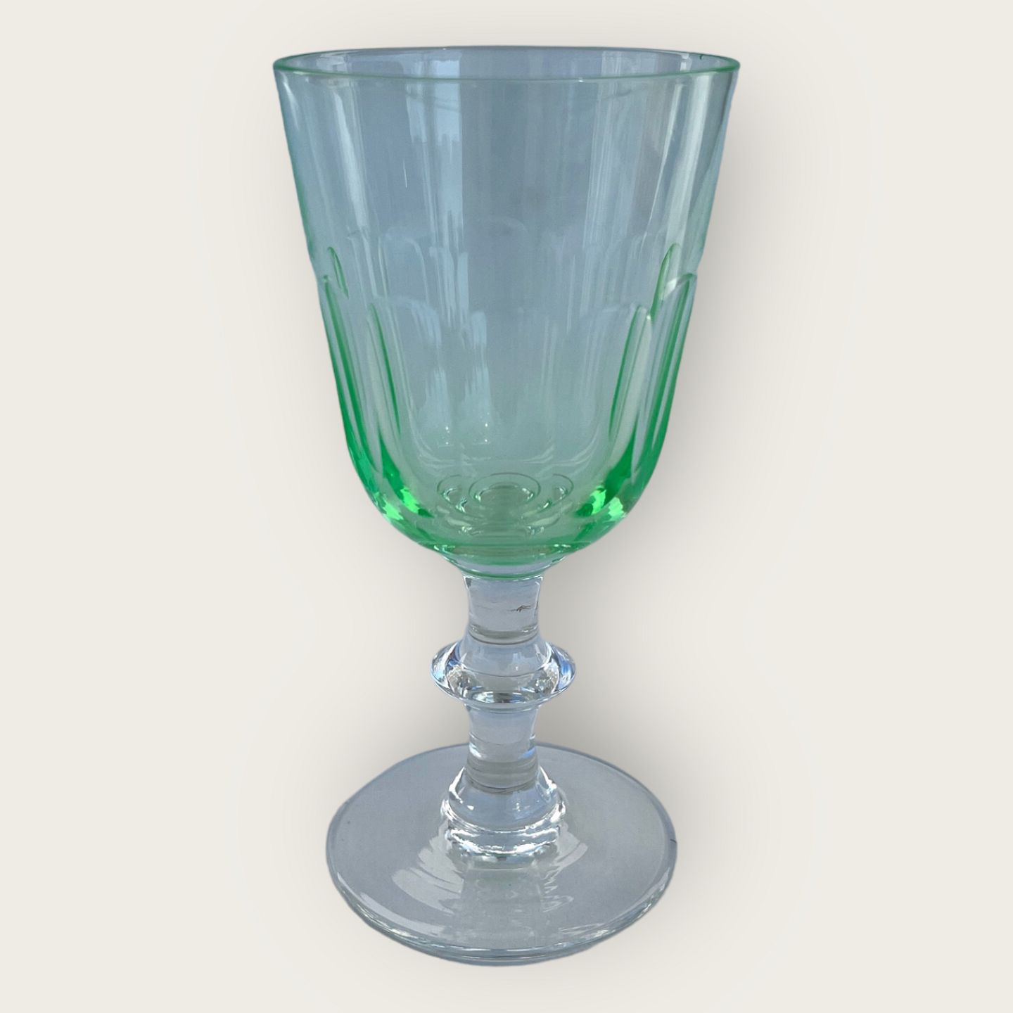 Various Danish glass works, Berlinois, Christian d. VIII with faceted basin, White wine with green basin, approx. 12cm high, 6cm in diameter, The glasses vary in height and diameter *Perfect condition*