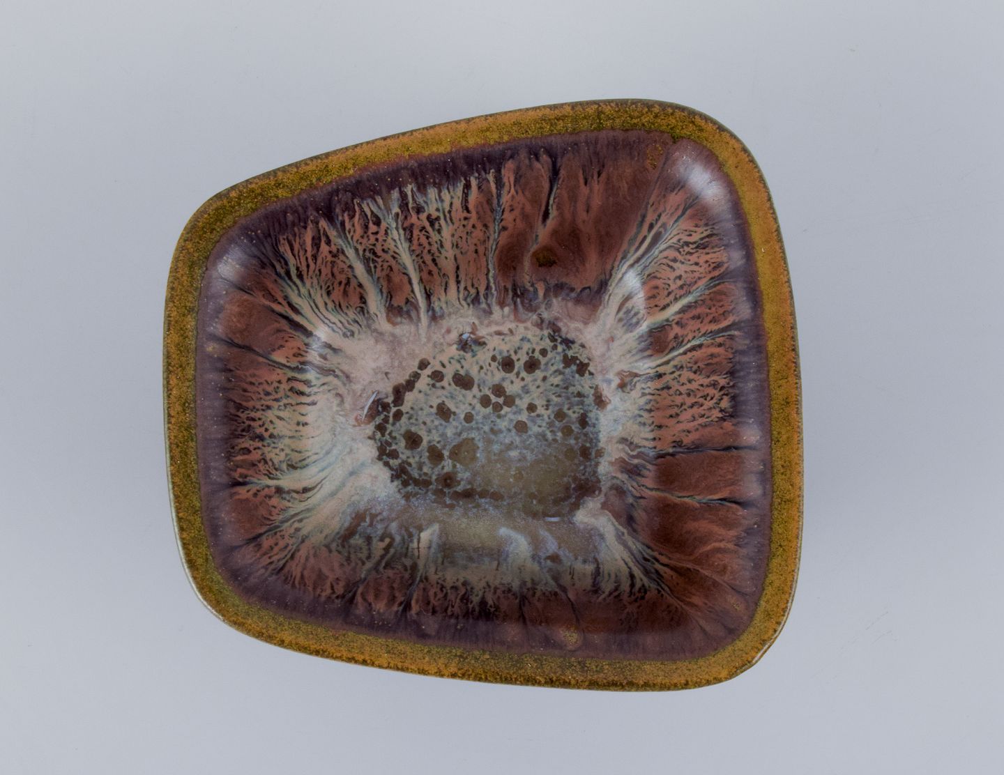 Gunnar Nylund for Rörstrand, small ceramic bowl with beautiful glaze in green-brown tones.