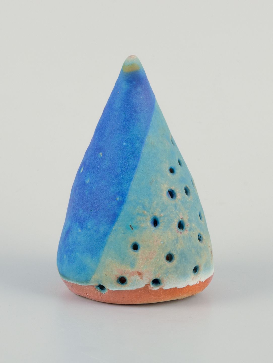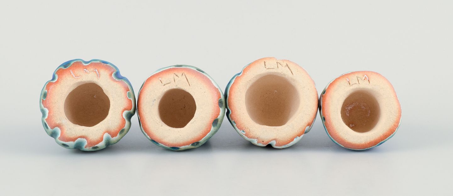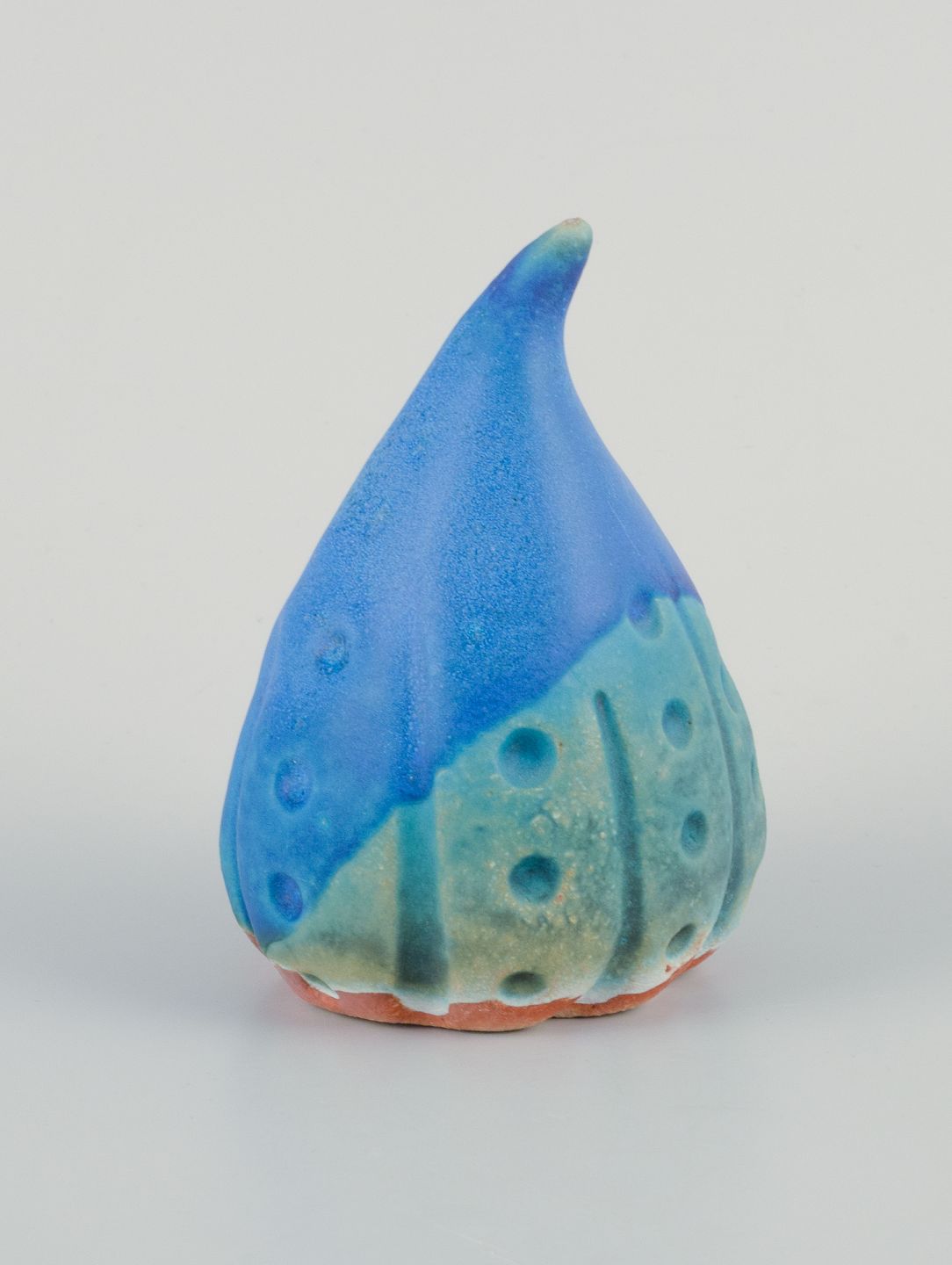 Linda Mathison, contemporary Swedish ceramic artist, four small unique ceramic sculptures in turquoise glaze.