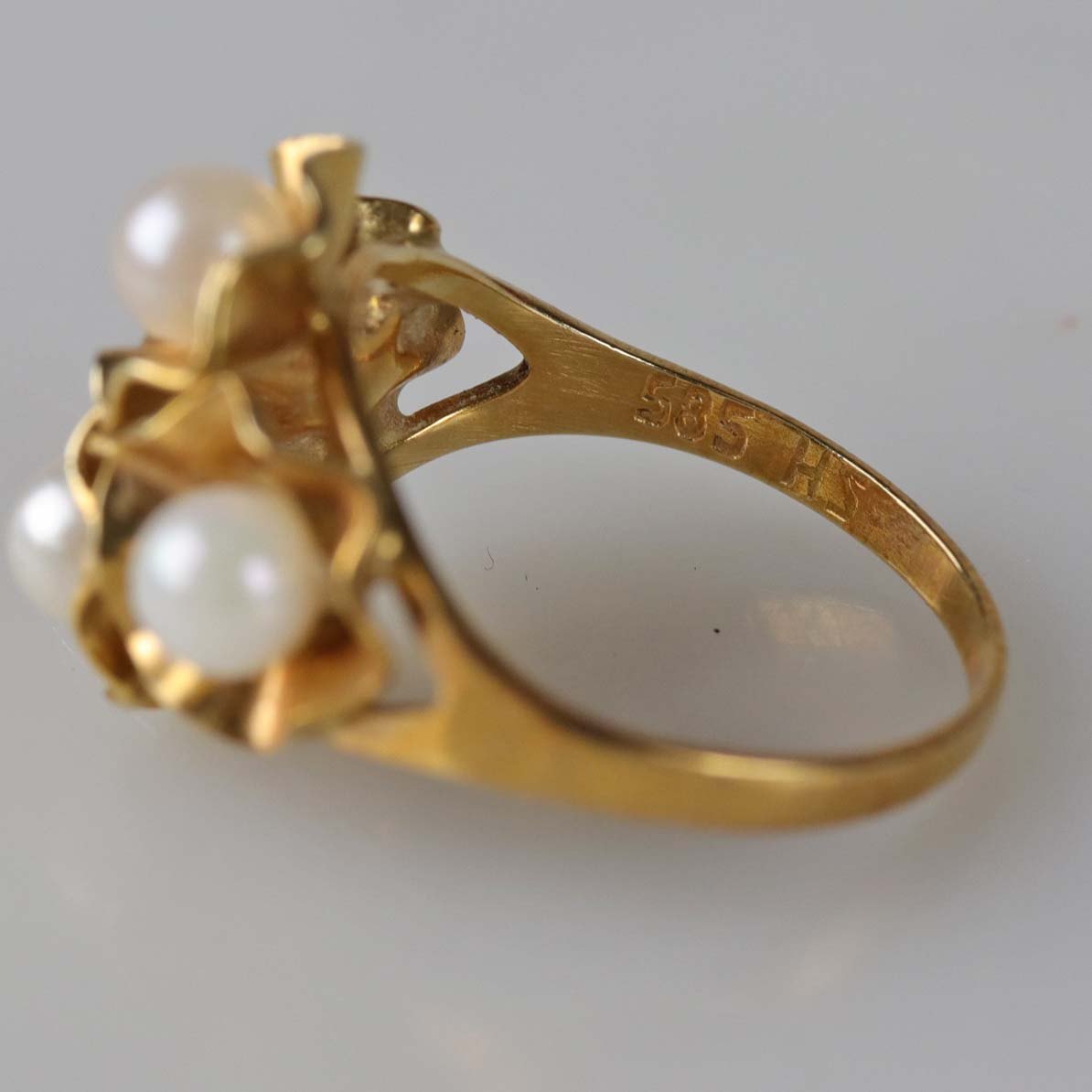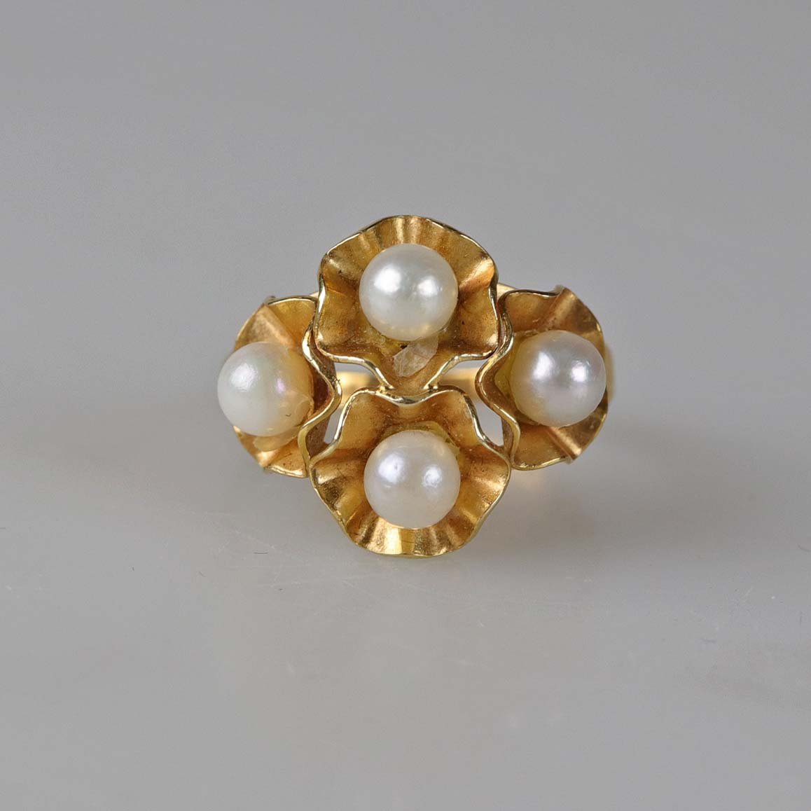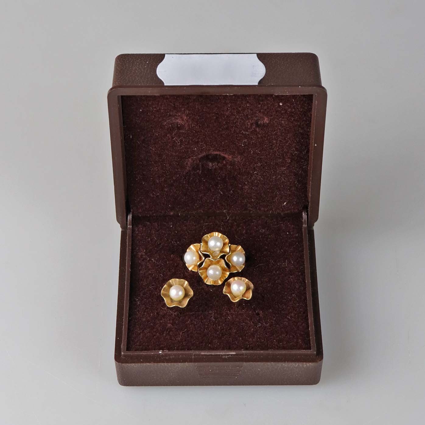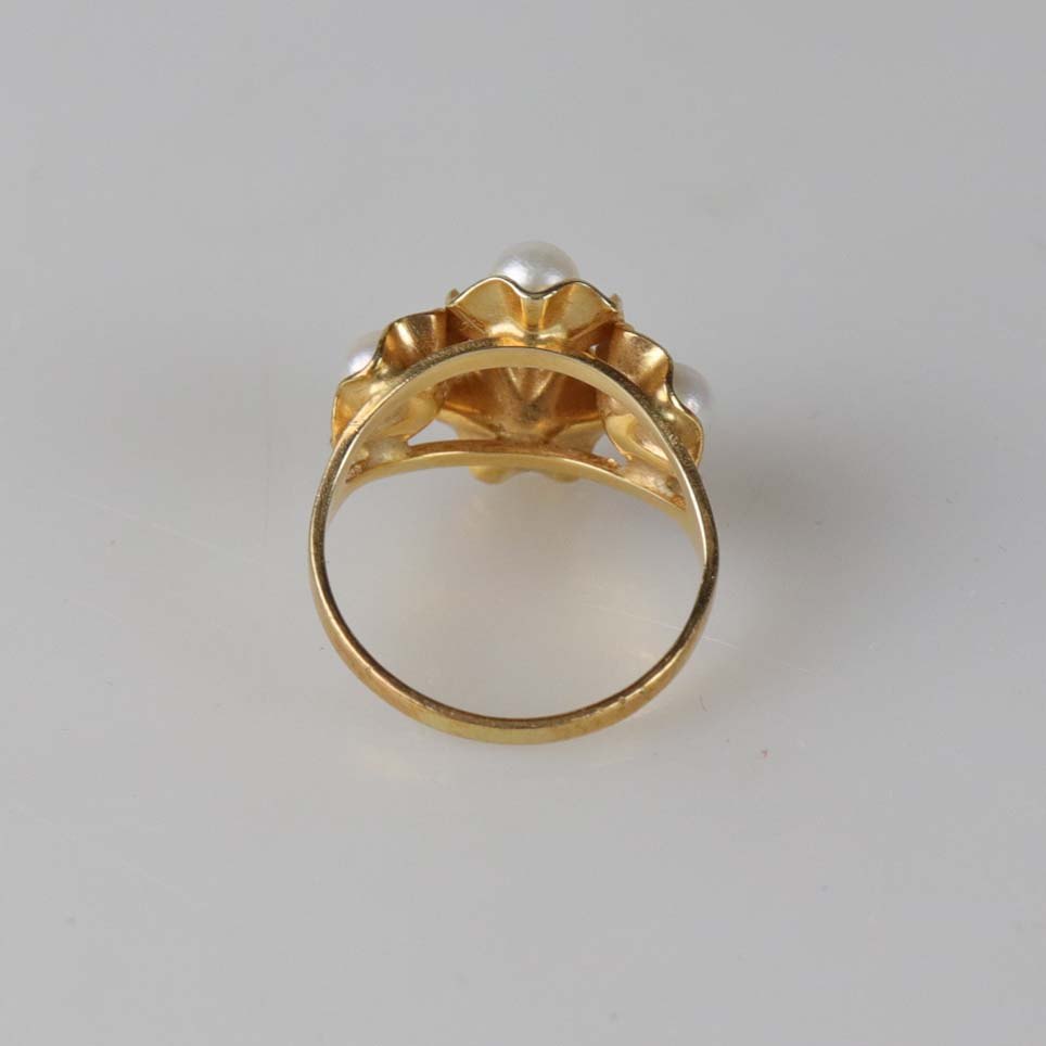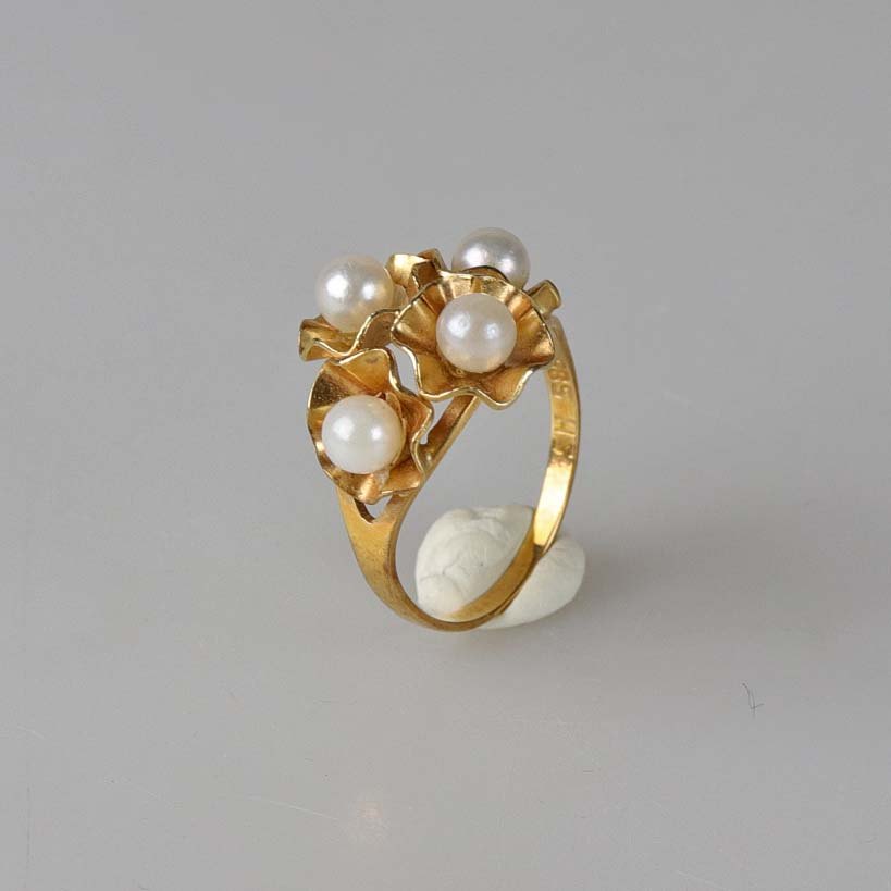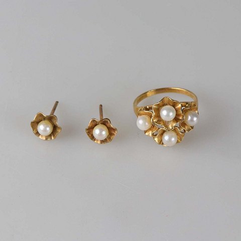 Sæt med ørestikker og ring i 14 karat guld og med perler