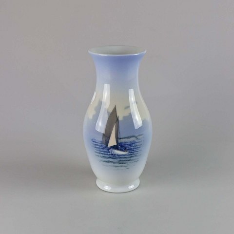 Tulipanformet vase i porcelæn med motiv af båd med sejl no 2765/2289