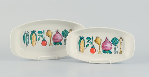 Villeroy & Boch, Luxembourg, two "Primabella" retro-style stoneware dishes featuring various vegetable motifs.