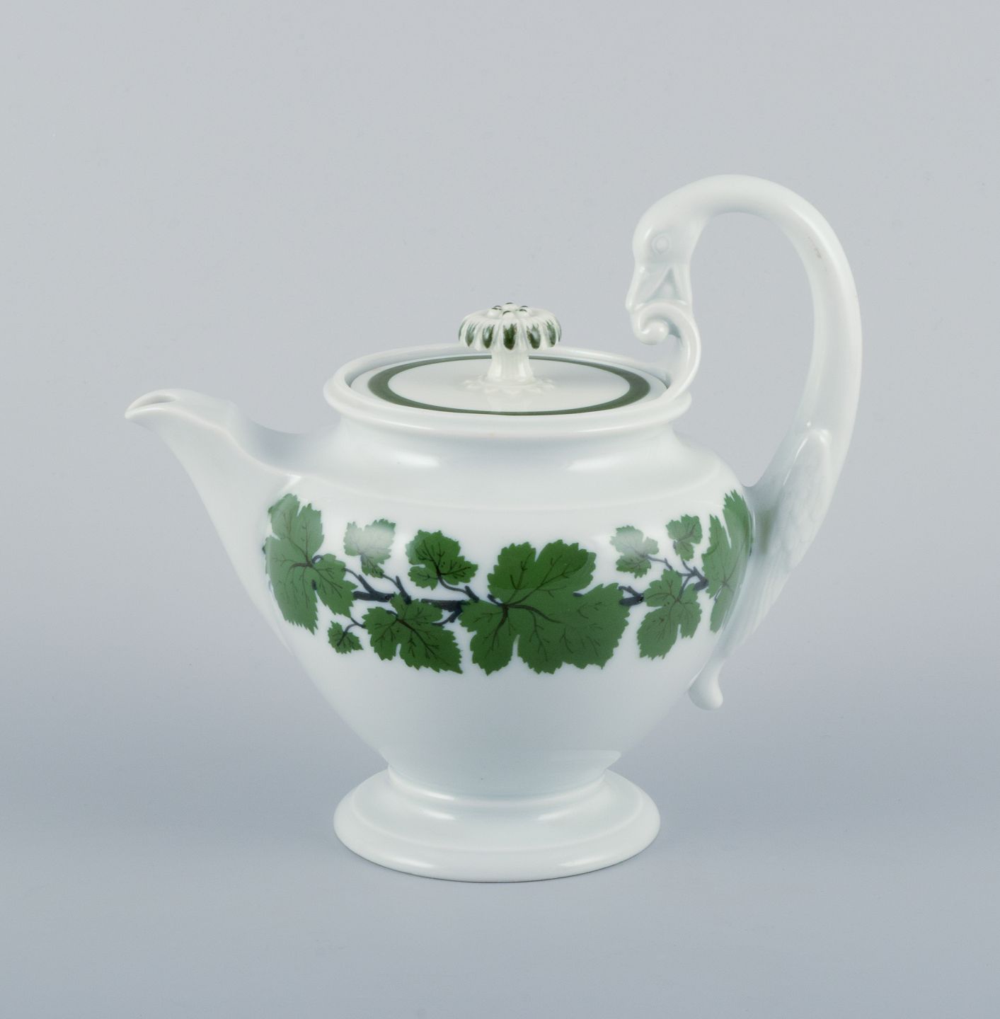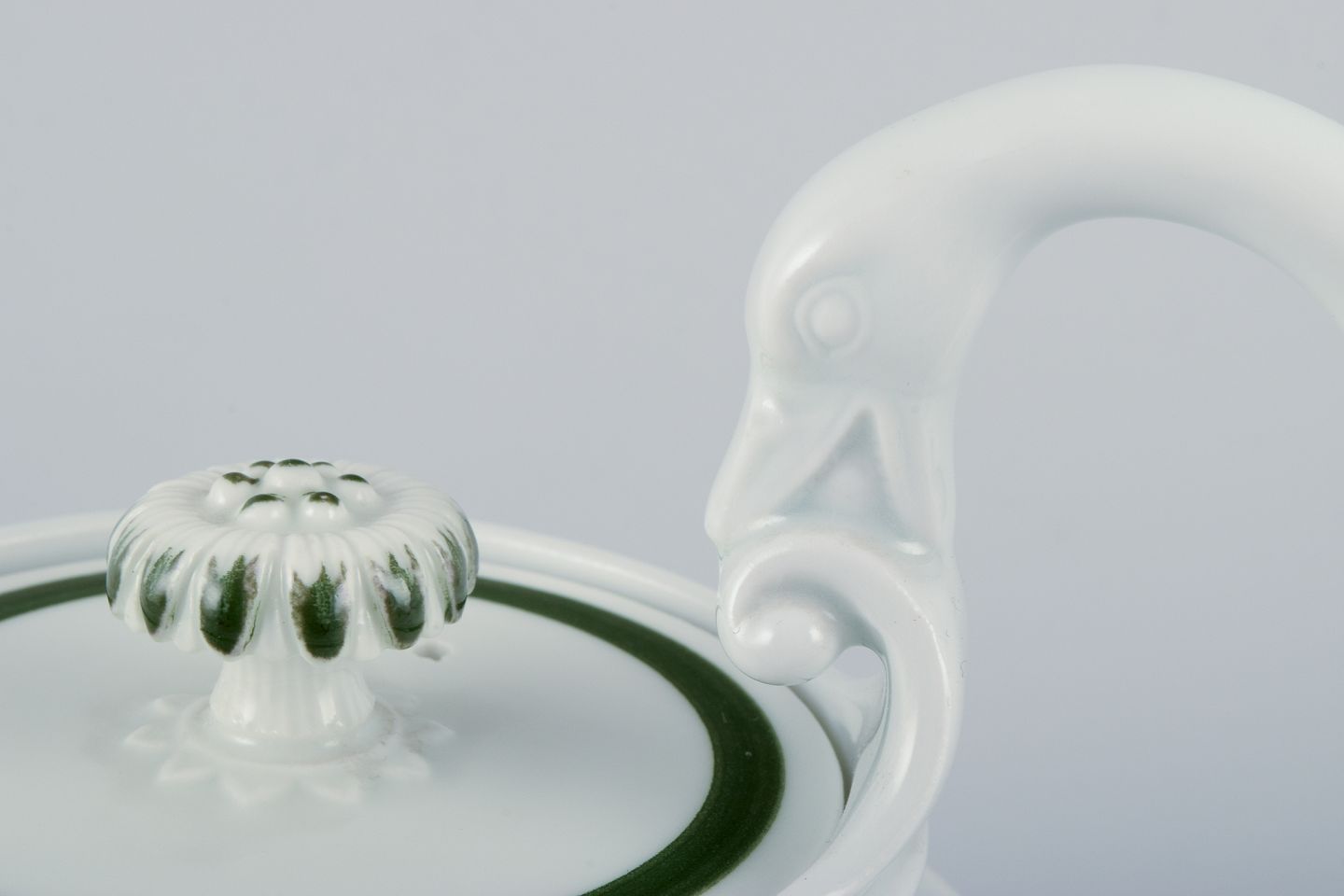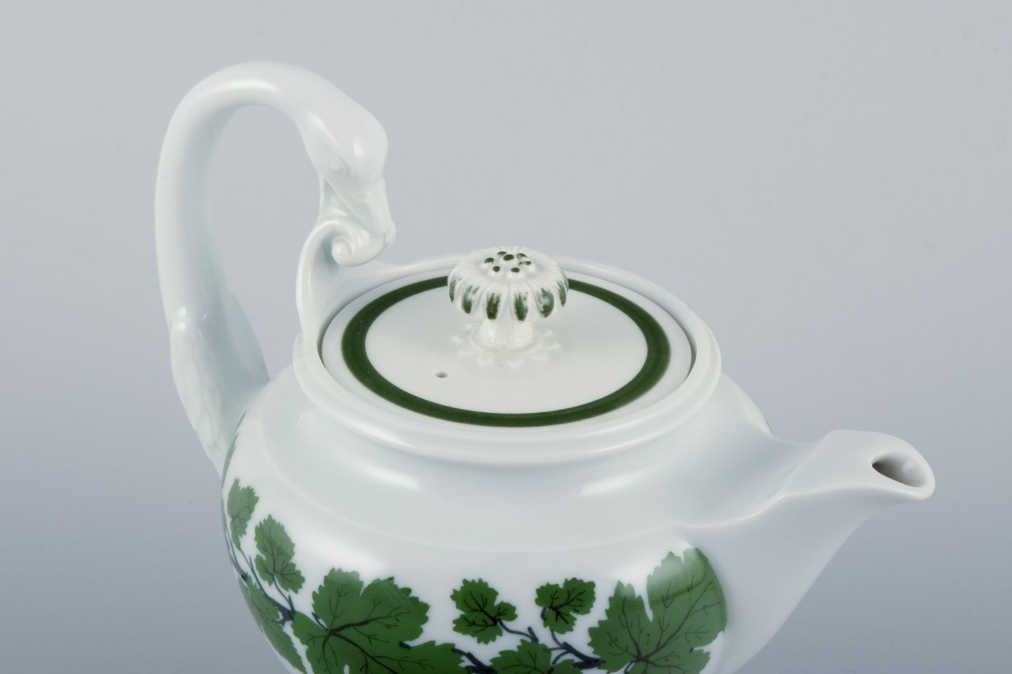 Meissen, Germany, Green Ivy Vine, teapot with swan-shaped handle. Hand-painted.