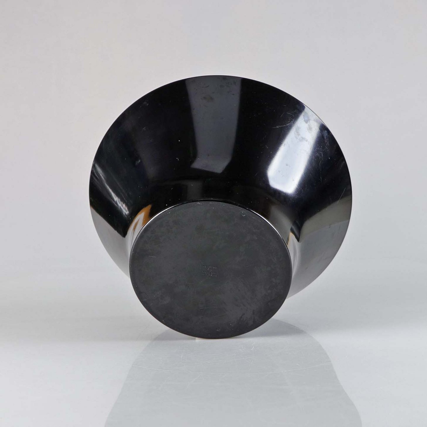 Sort skål i hård plast formet som en tragt