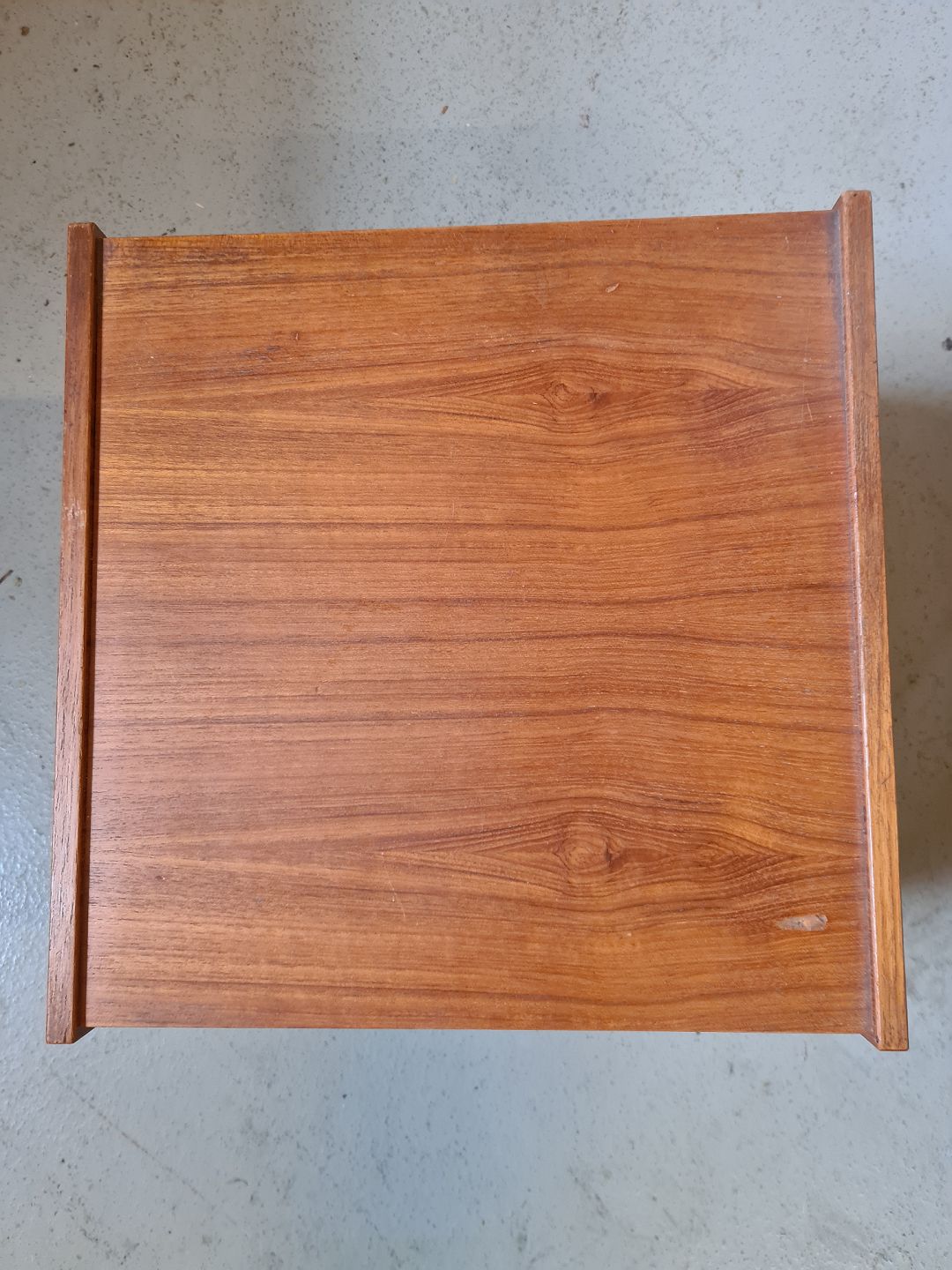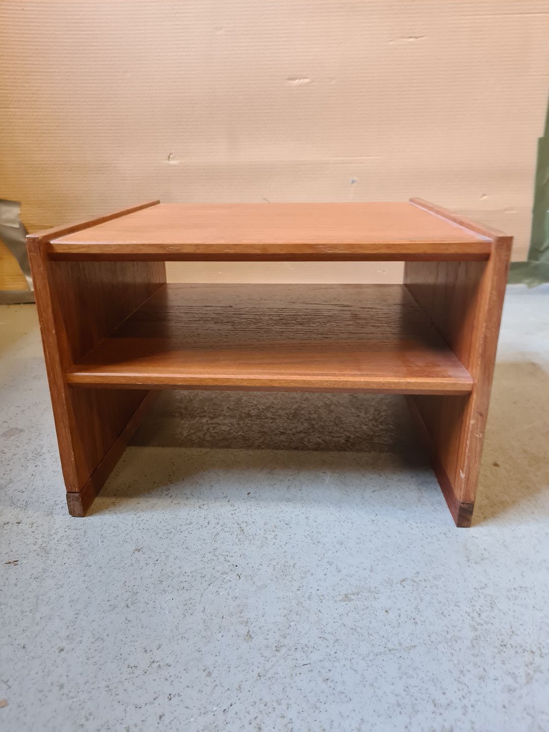 Mini møbel med hylde i fineret teaktræ, fra 1960erne.