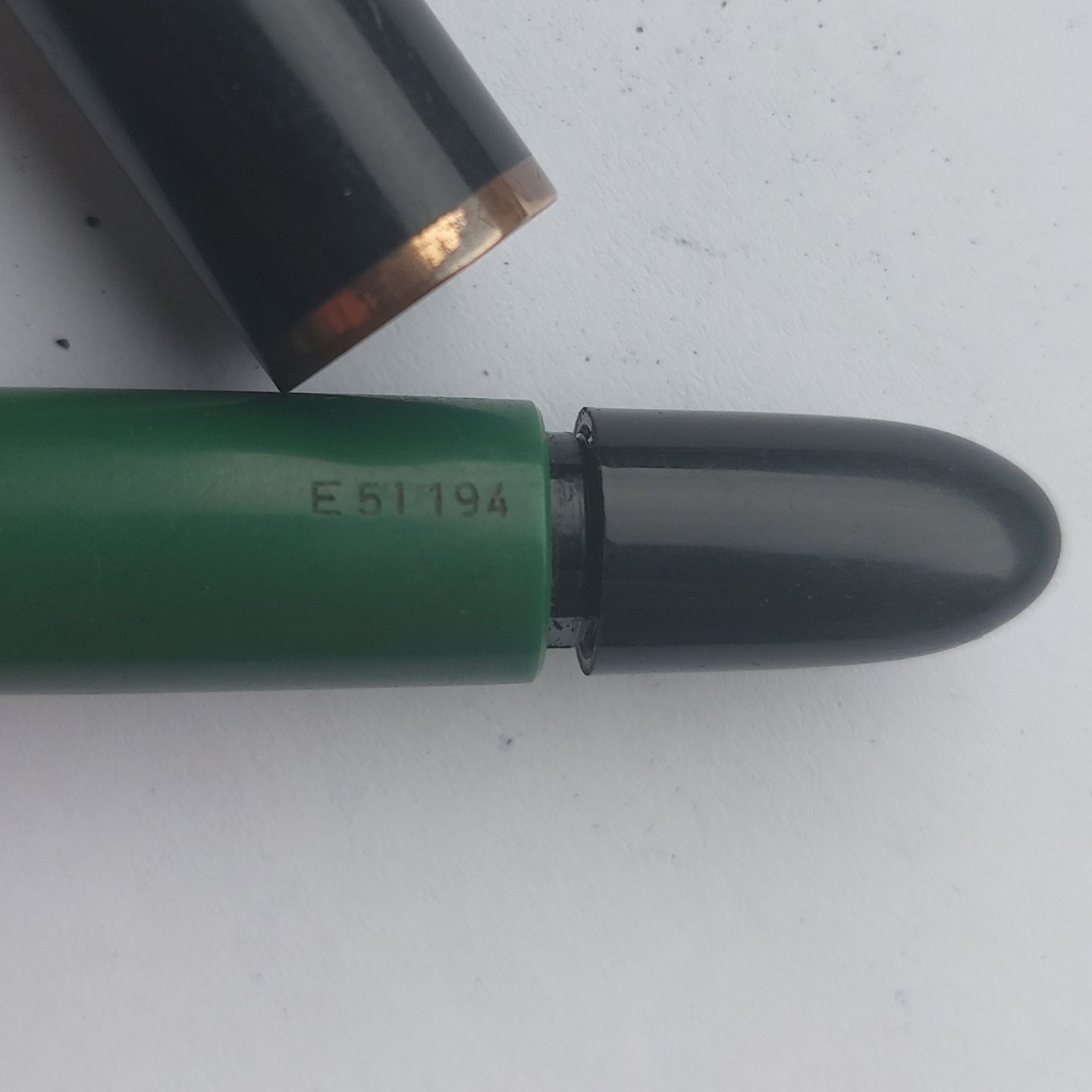 Green Pelikan 120 fountain pen with black cap. Piston filler. Works fine. Made in Germany in the 1950s. All parts original including the steel nib. Light traces of use on the metal parts. Otherwise in good condition with no damage or repairs. Length 12.5 cm.