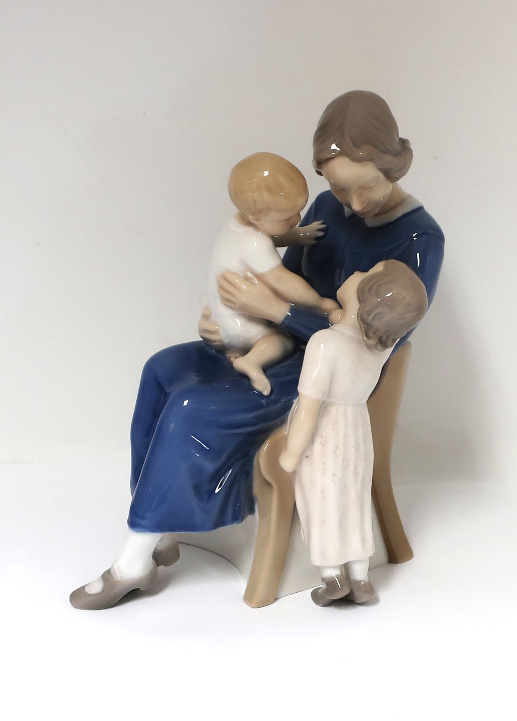 Bing & Grøndahl. Porcelænsfigur. Trio, mor med to børn. Model 2262. Højde 20 cm. (1 sortering)