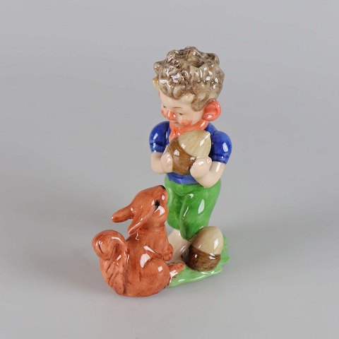 Text available in Danish: Porcelænsfigur fra Collections serien Troldefamilie. Troldedreng med agern og egern