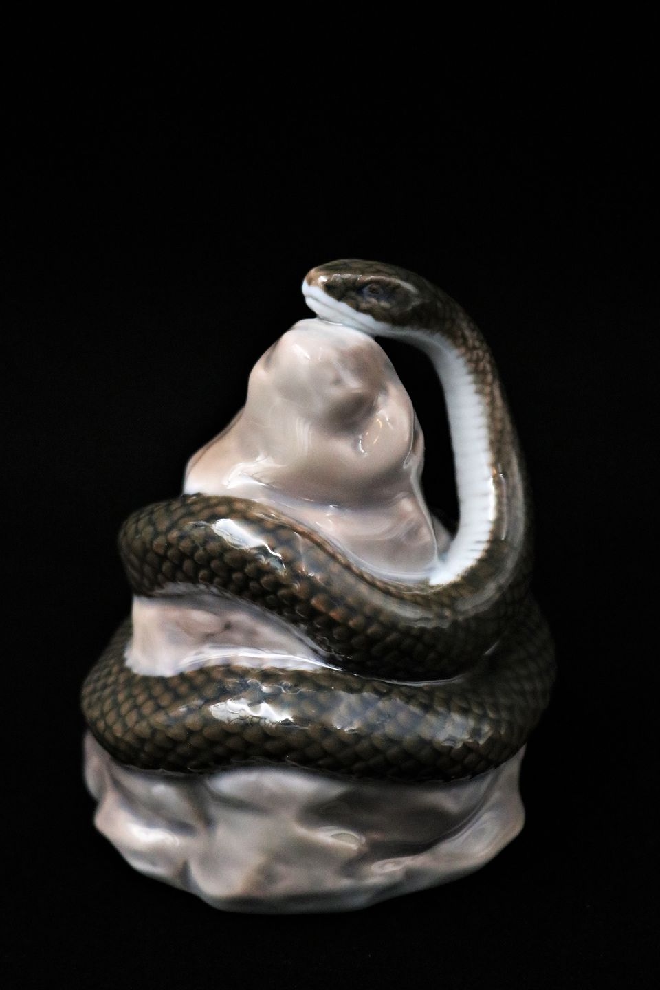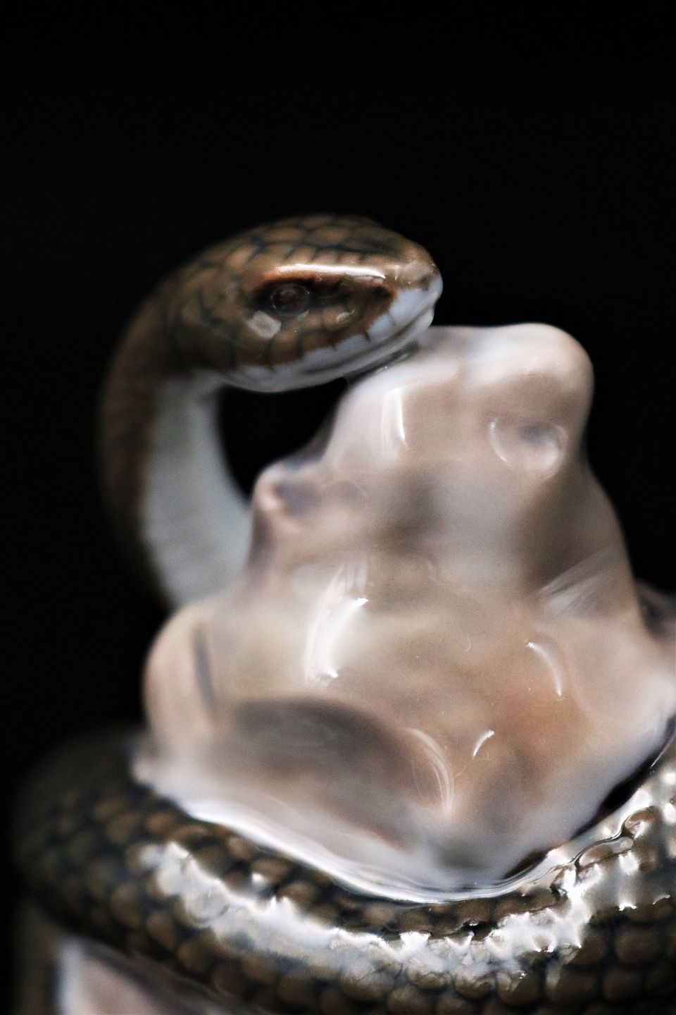 Sjælden Royal Copenhagen porcelænsfigur af slange på en sten.