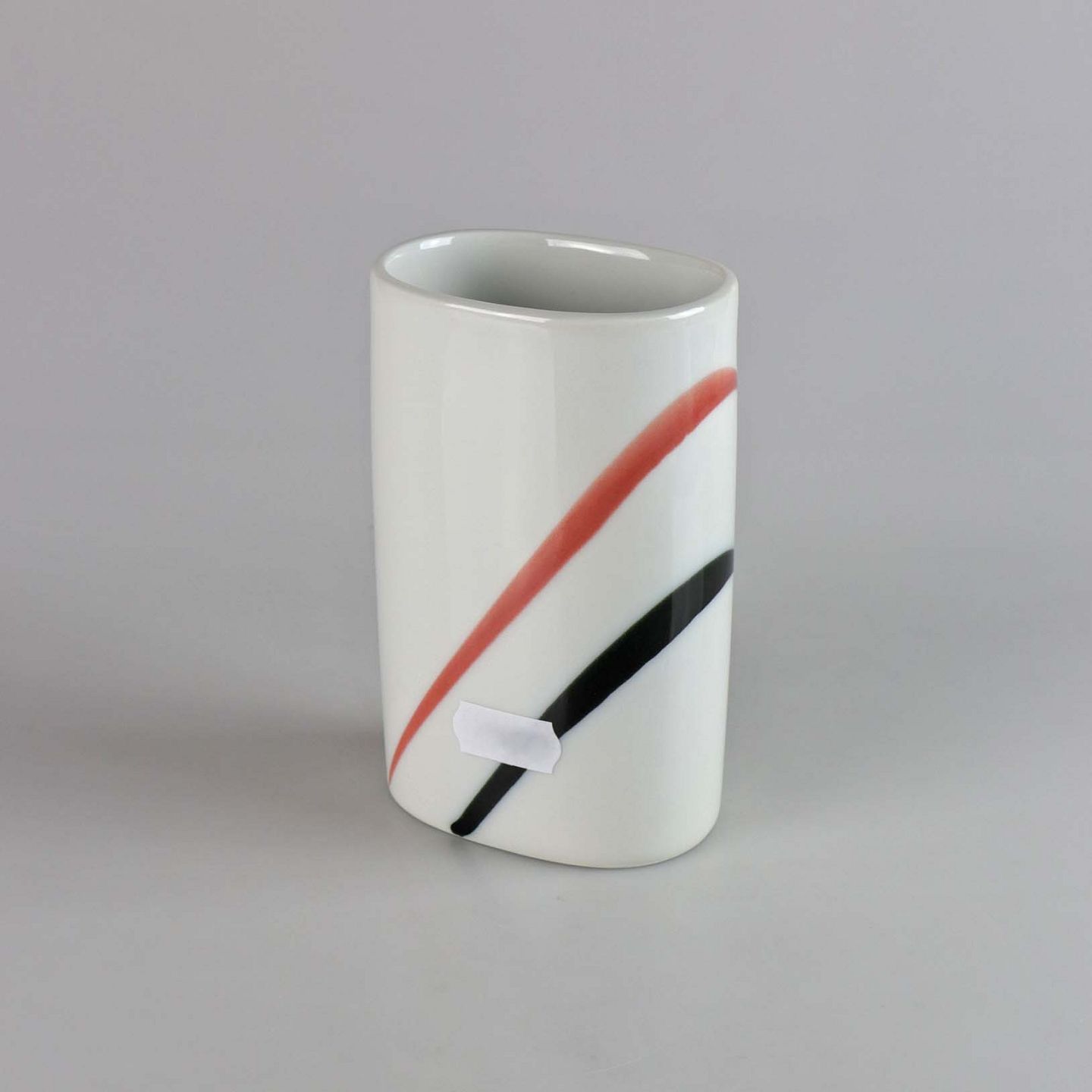 Blomstervase i hvidt porcelæn med sort og rød dekoration