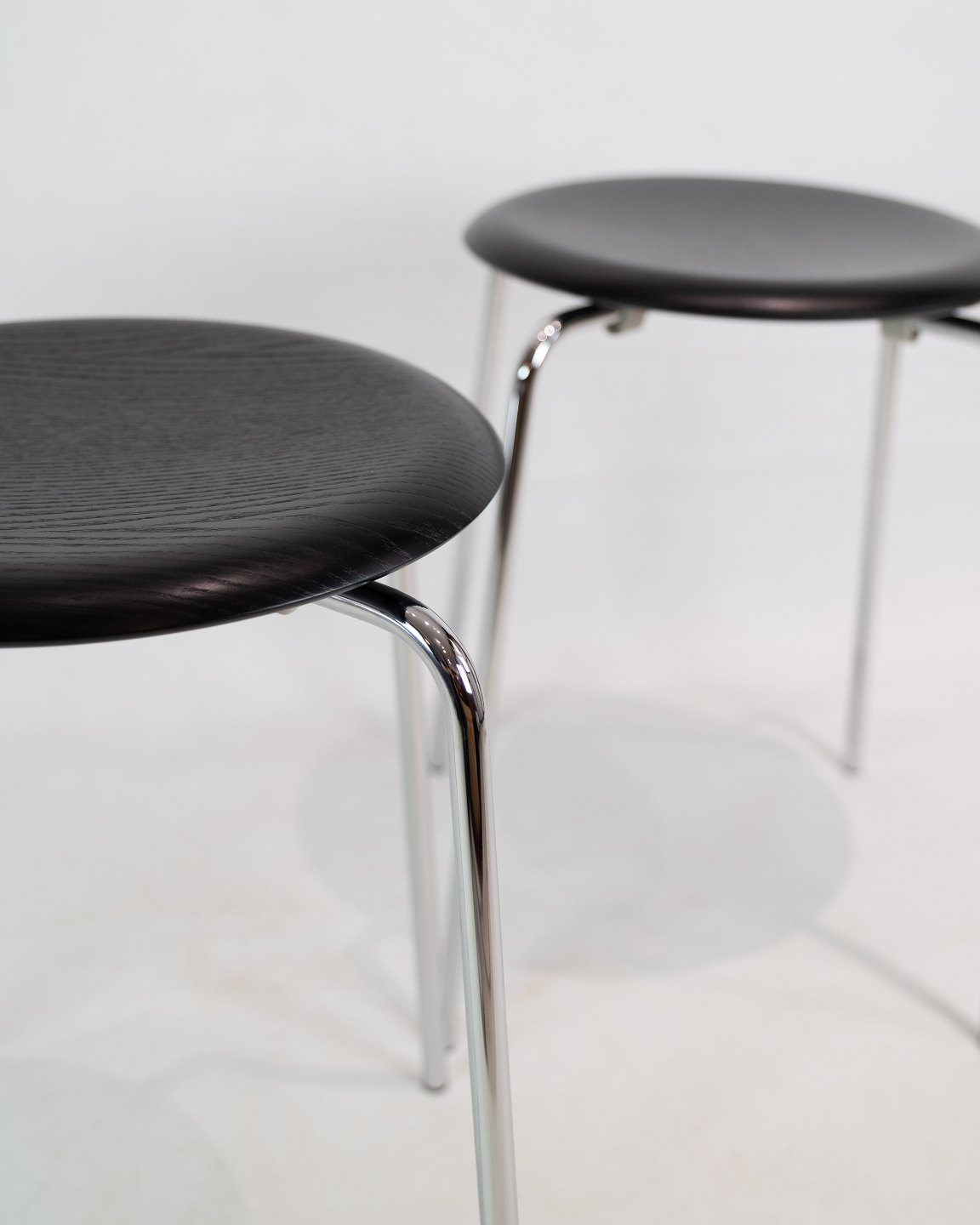 Set Of Two Dot Stool - Black Ash - Arne Jacobsen - Fritz Hansen