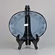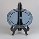 Blå mundblæst glas fad fra serien Skjold, dekoreret med spiraler
