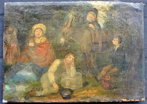 Engelsk kunstner (19. årh.): Folk holder et hvil. Olie på lærred. Usigneret. 31,5 x 44 cm.