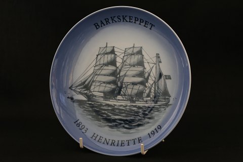 Ship plate Bing & Grøndal, No. 11, from 1987. The plate is painted with the Bark ship, with the text 1893 Henriette 1919. There is text about the ship on the back of the plate.