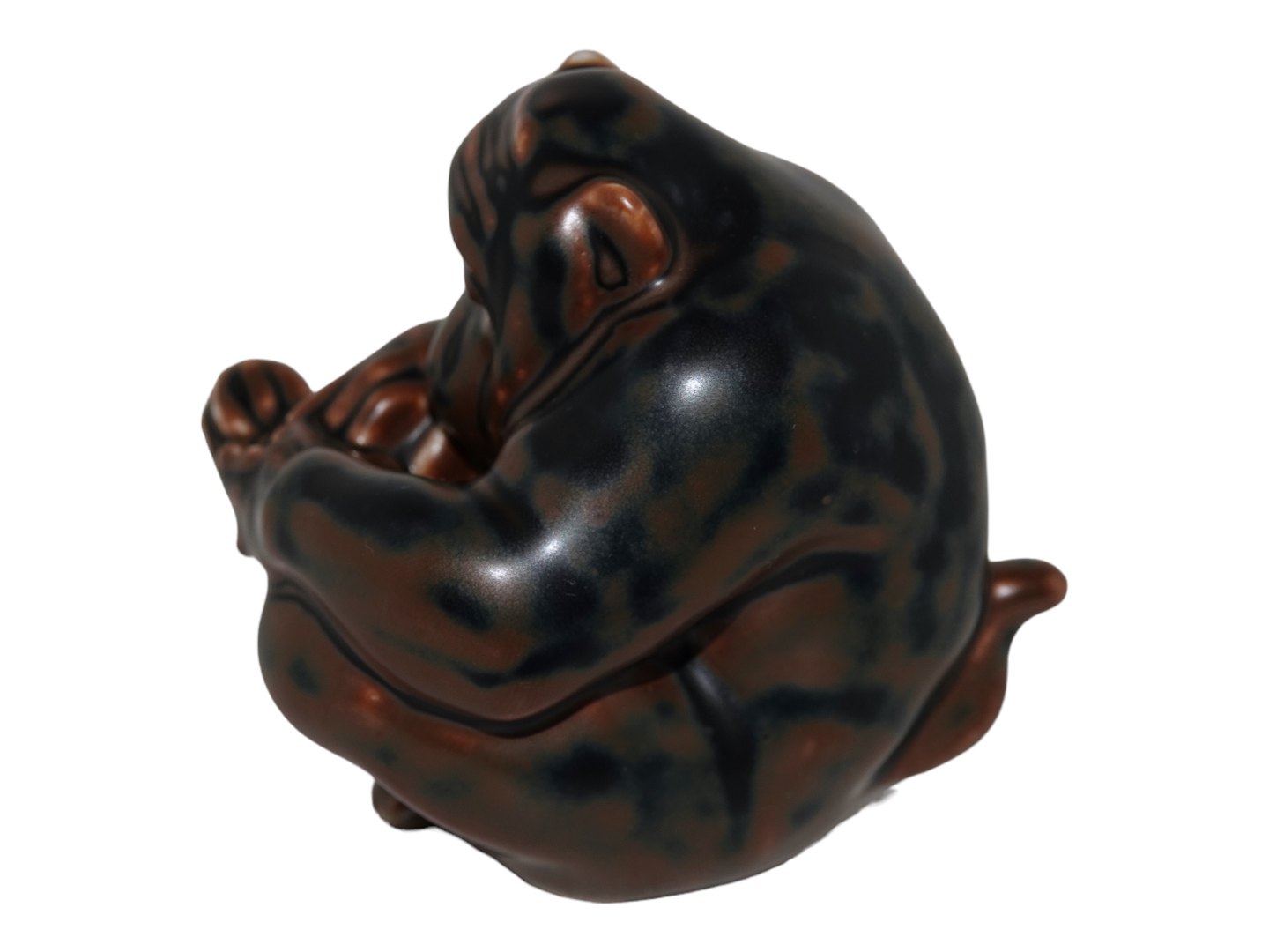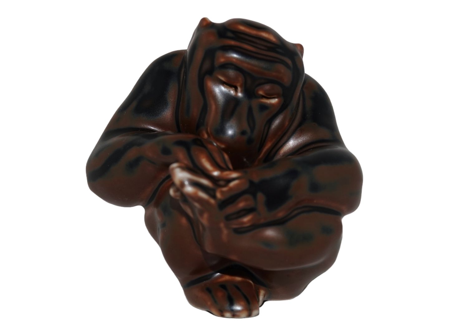 Small Royal Copenhagen brown stoneware figurine, monkey.