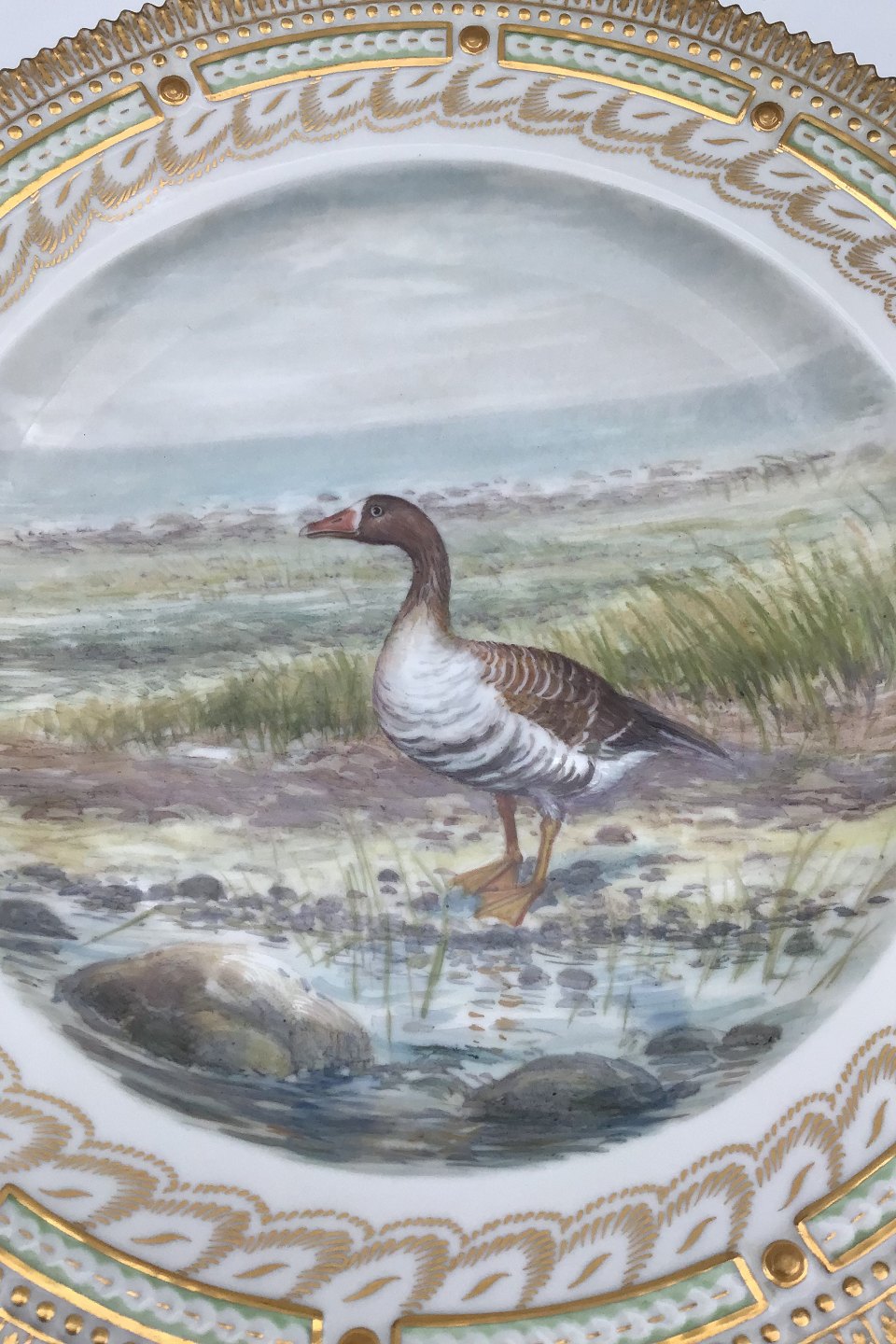 Royal Copenhagen Flora Danica Bird Dinner Plate No 240/3549. Latin Name: Anser albifrons. Measures 25.5 cm (10.03 inch)
