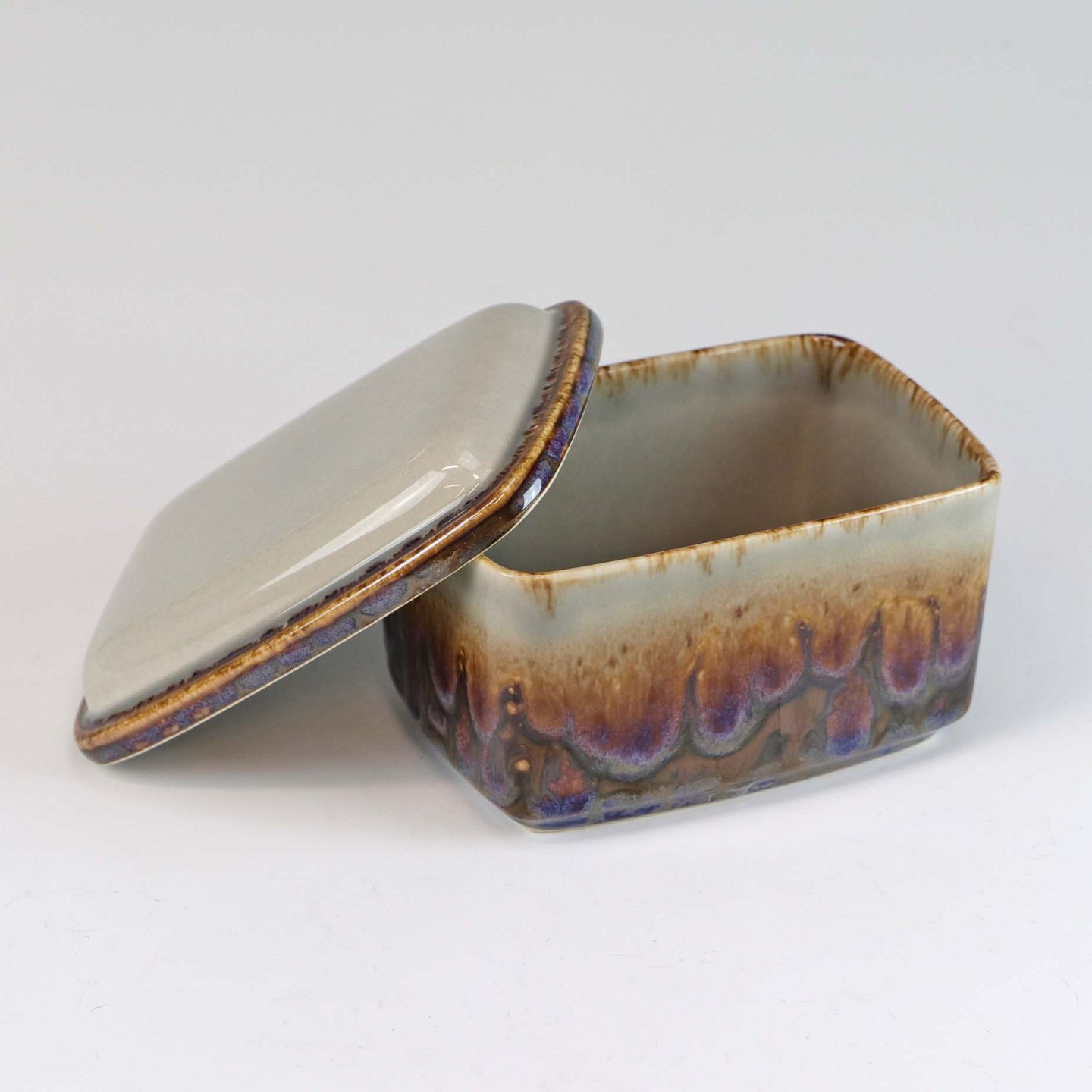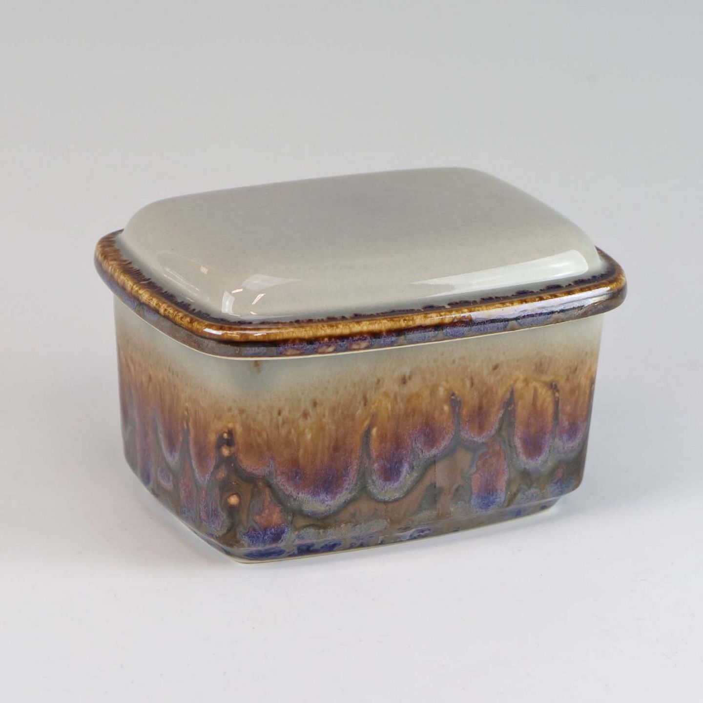 Smørboks med låg af stentøj fra stellet Mexico. No 582