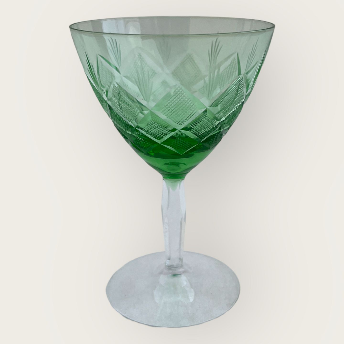 Lyngby glass, Vienna antique, White wine glasses dark green goblets, 12cm high, 7.5cm in diameter *Perfect condition*