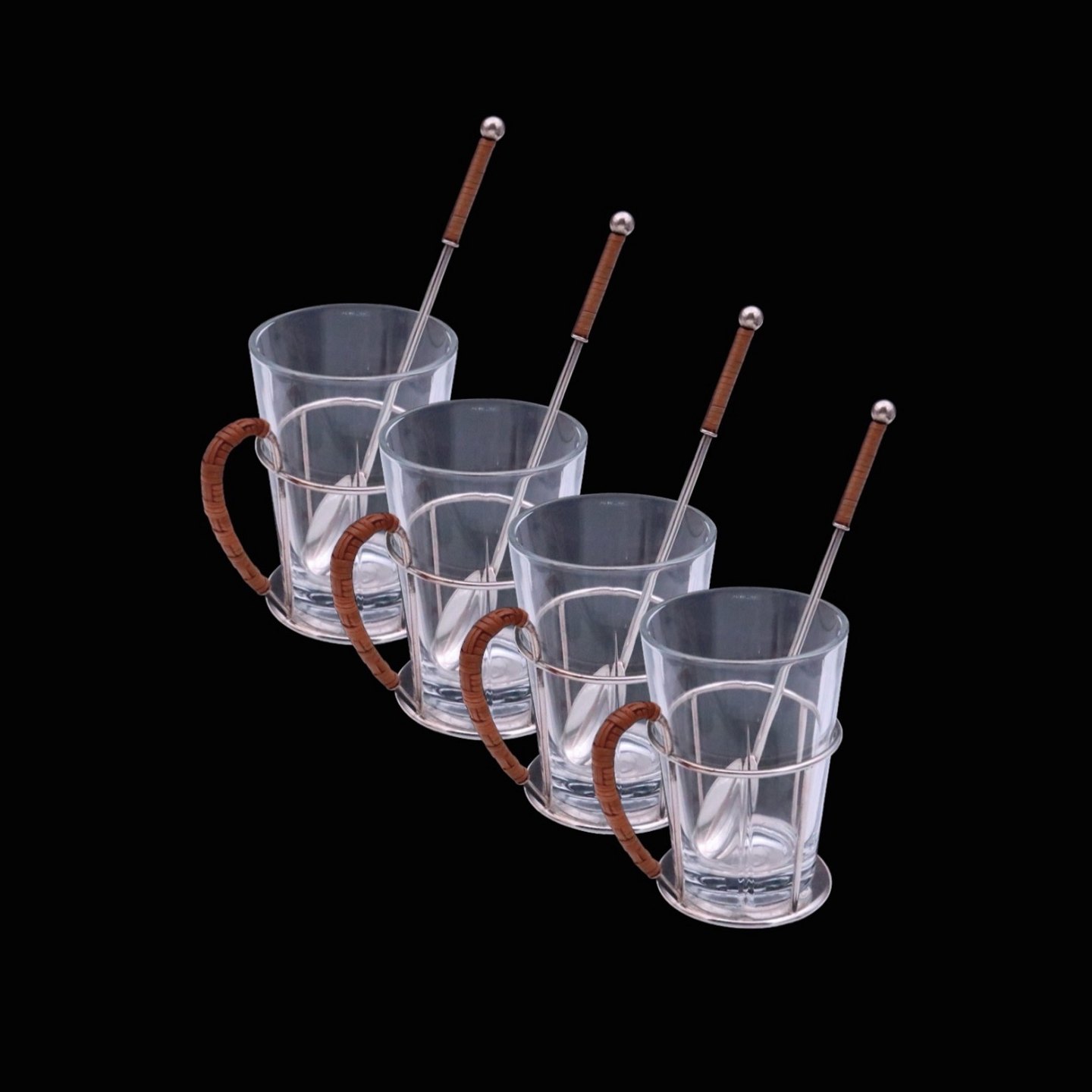 Svend Weihrauch. Set of four Sterling Silver Toddy Glass Holders with Spoons.