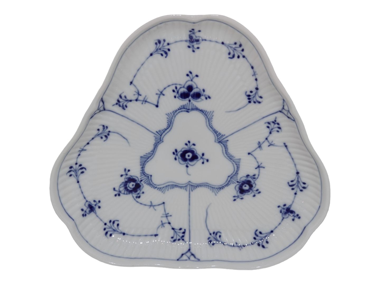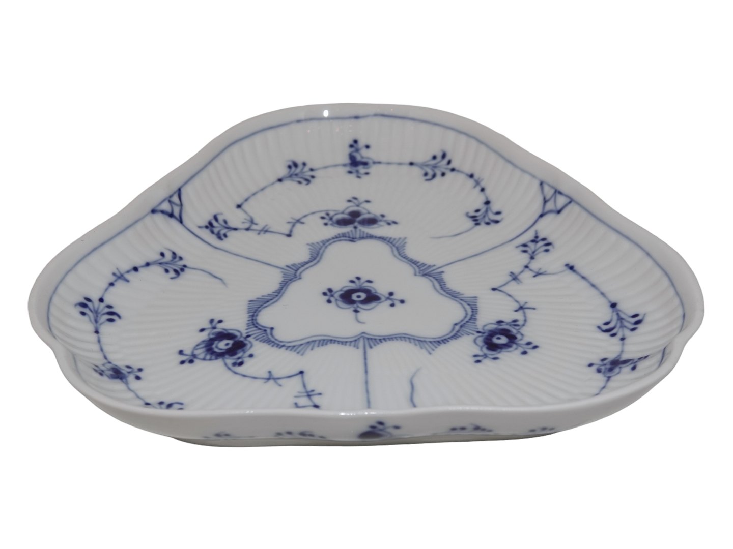 Royal Copenhagen Musselmalet Riflet, trekantet fad.