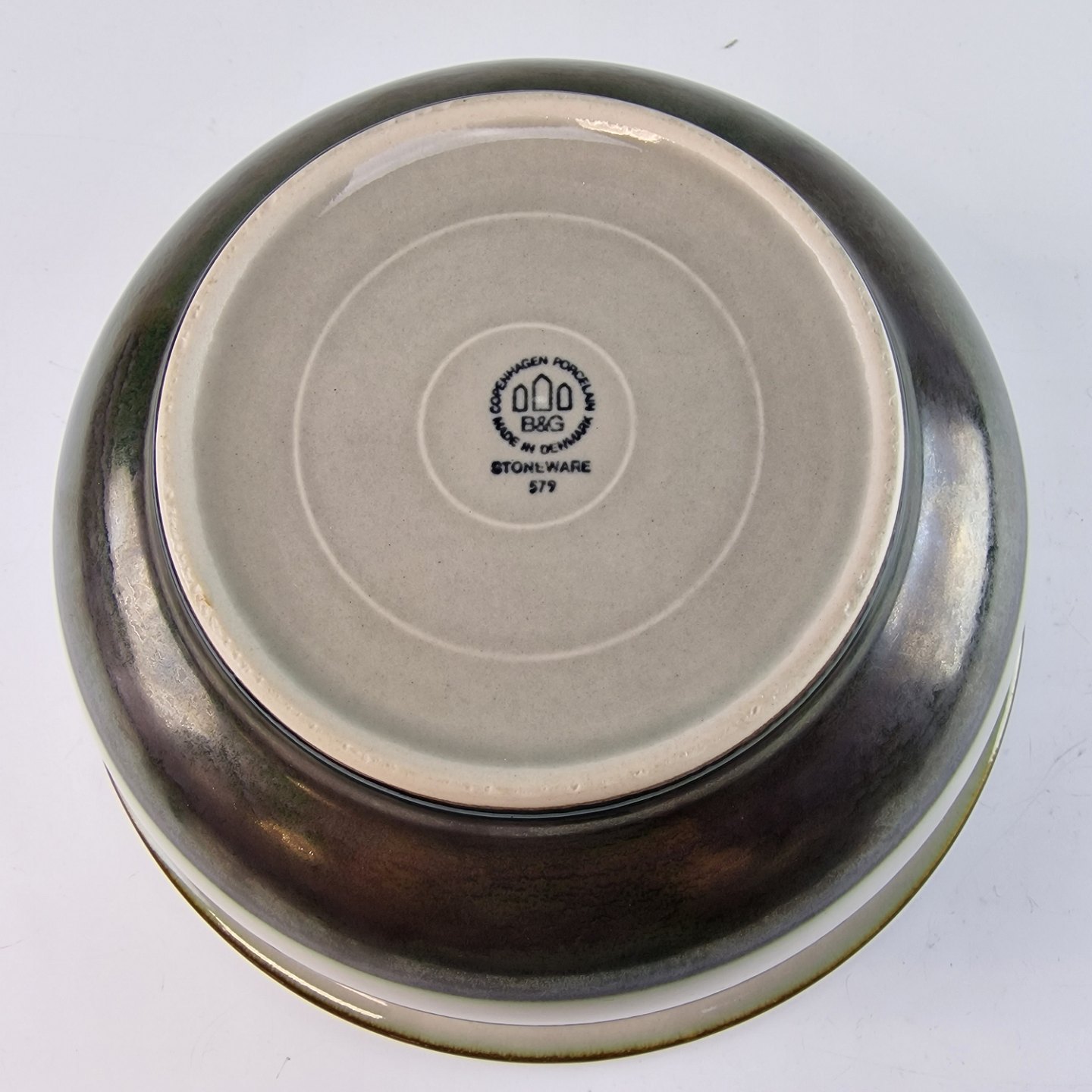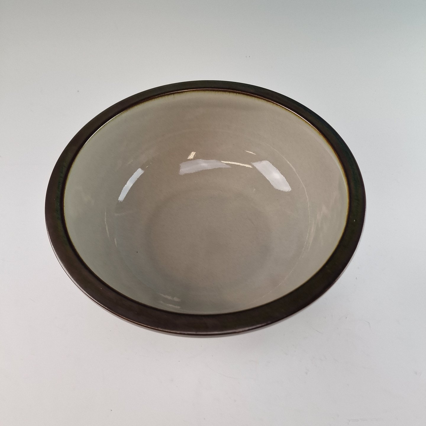 Stellet Tema er af stentøj, glaseret med lys grå og dekoreret med kanter af grønne og brune farver