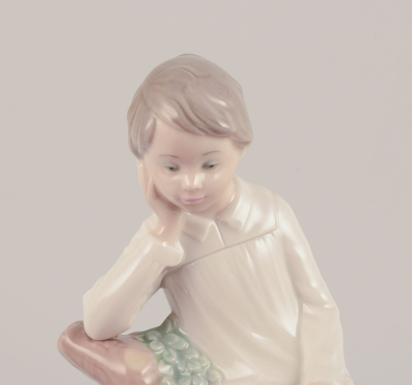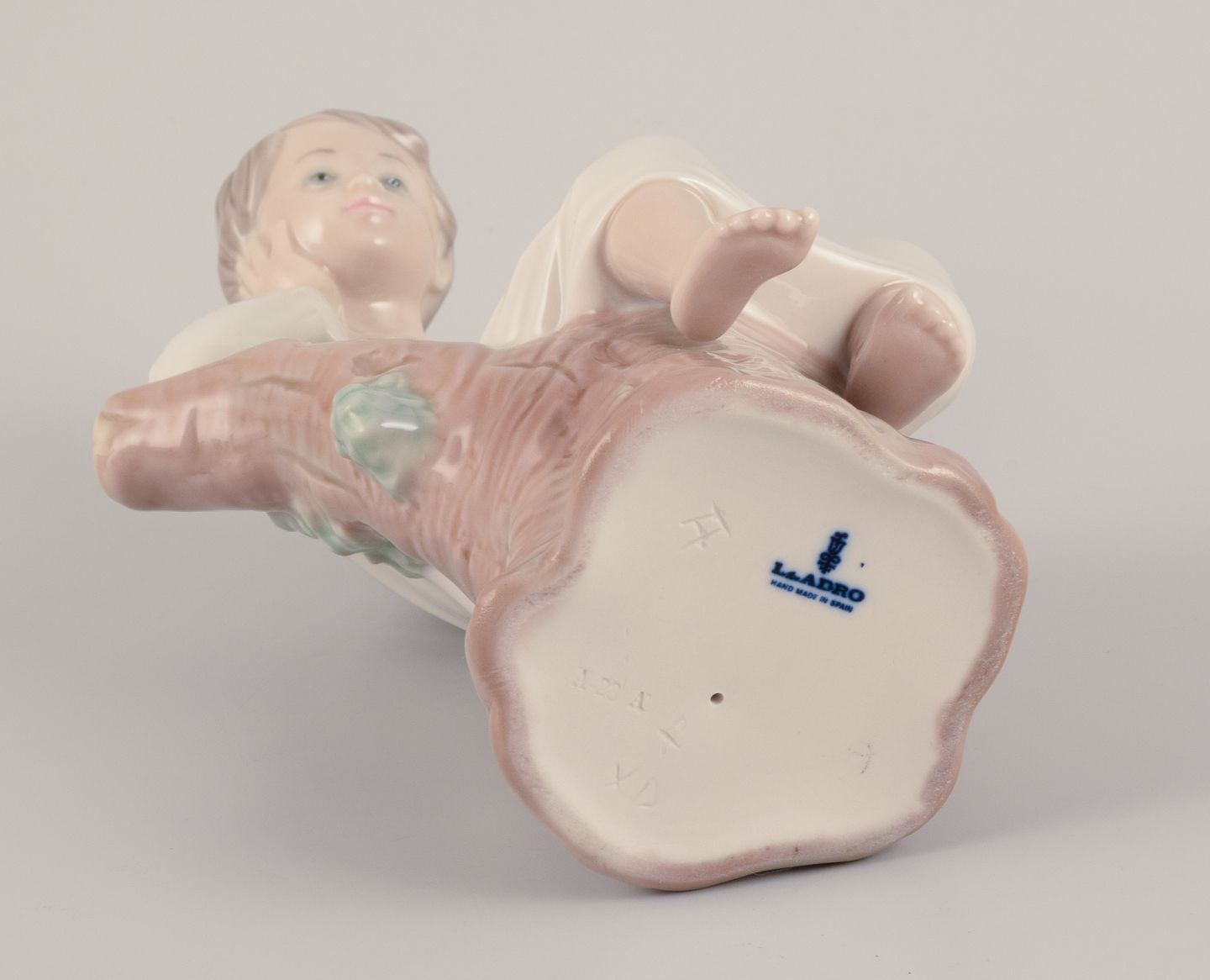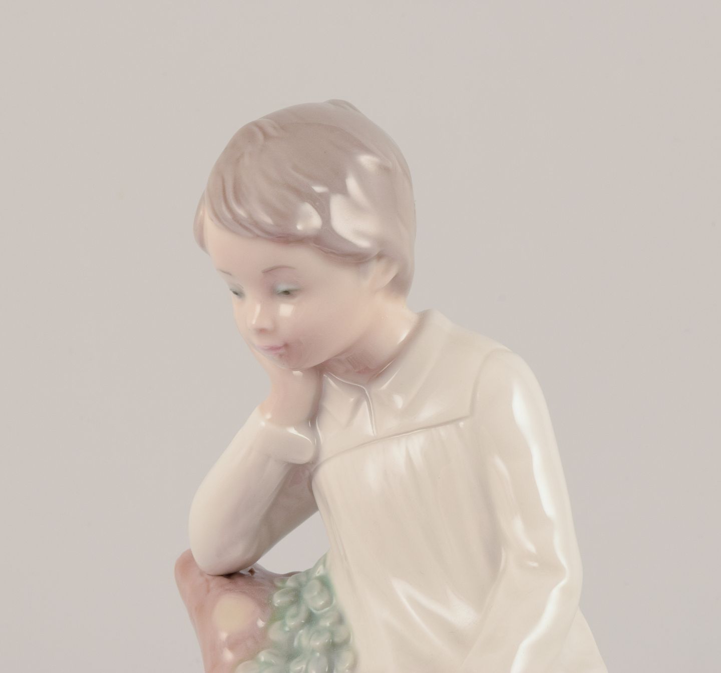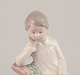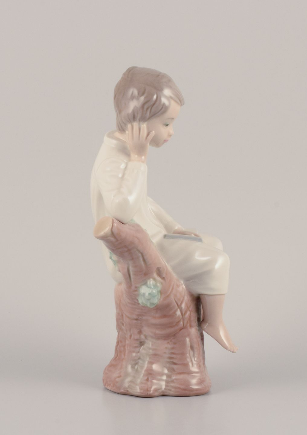 Lladro, Spanien. Porcelænsfigur af pige siddende på træstub.