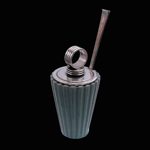 Arne Bang - F. Hingelberg. Stoneware Jar with Sterling Silver Lid and Spoon.